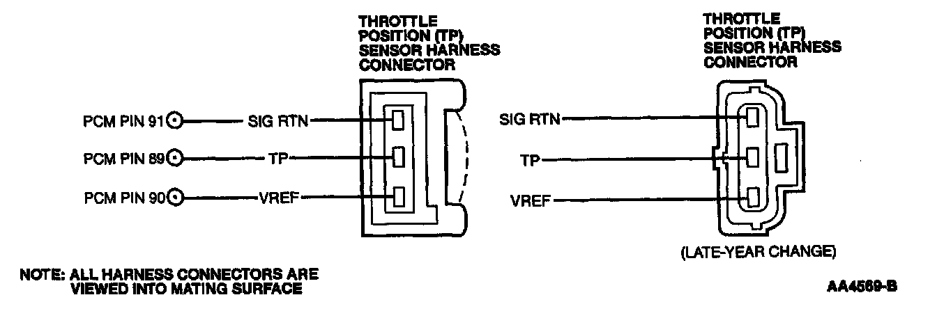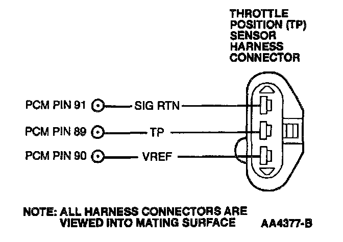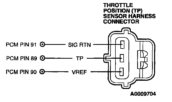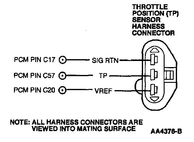 - Harness Circuits: TP, SIG RTN, VREF, Vehicle Power (VPWR), Power Ground (PWR GND) Powertrain Control Module (PCM)