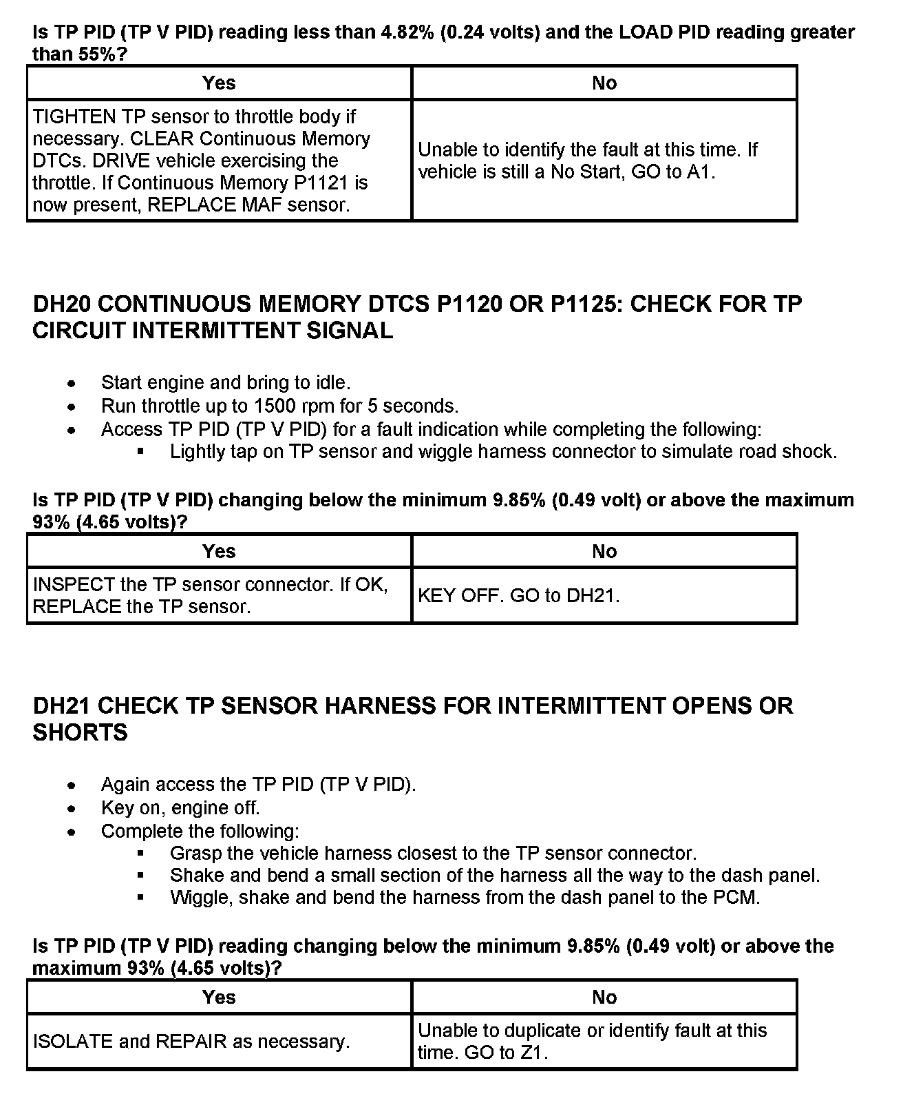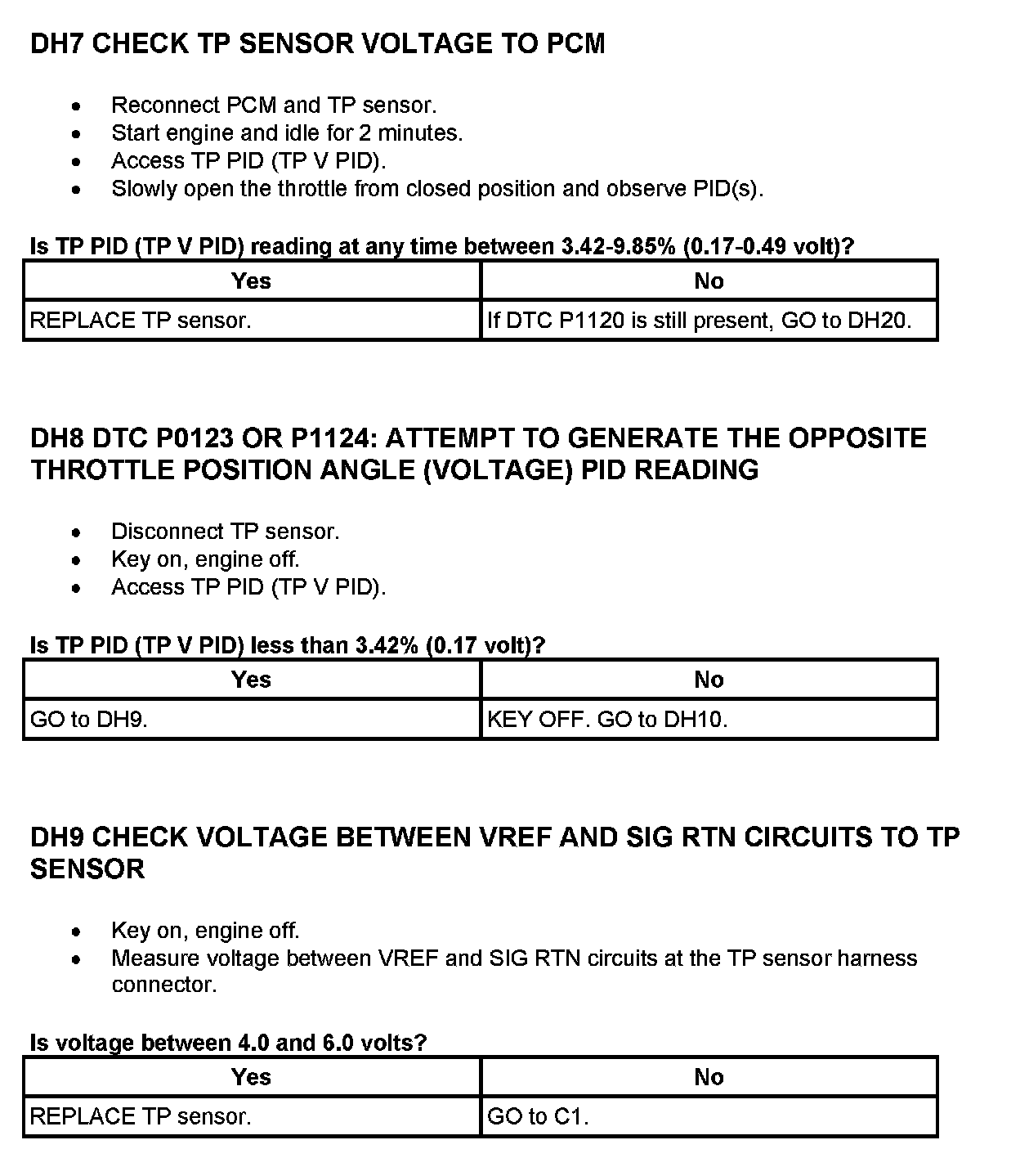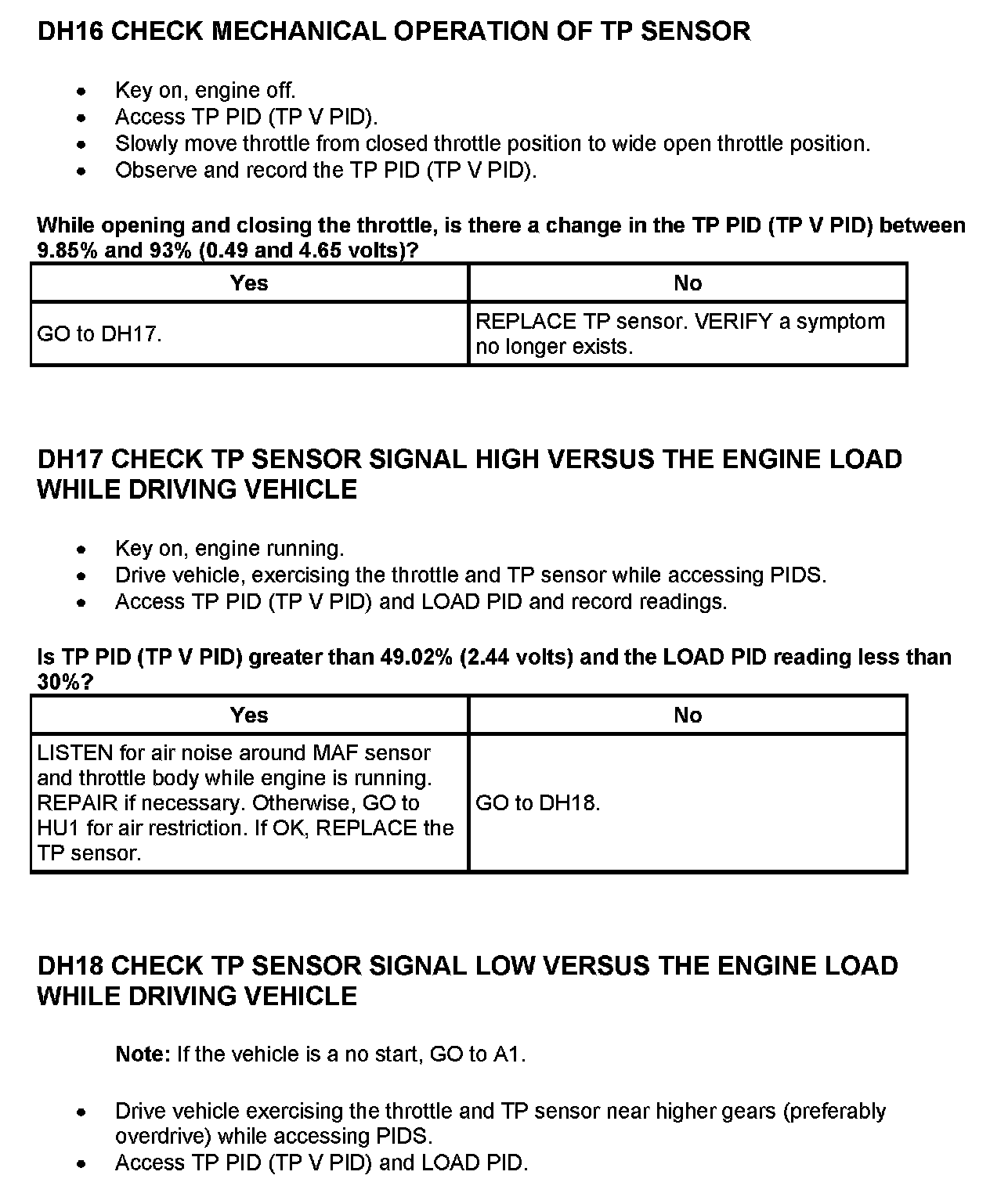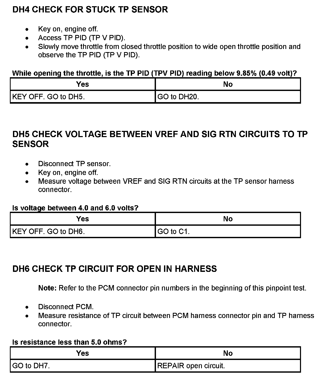 Tests DH: Throttle Position (TP) Sensor