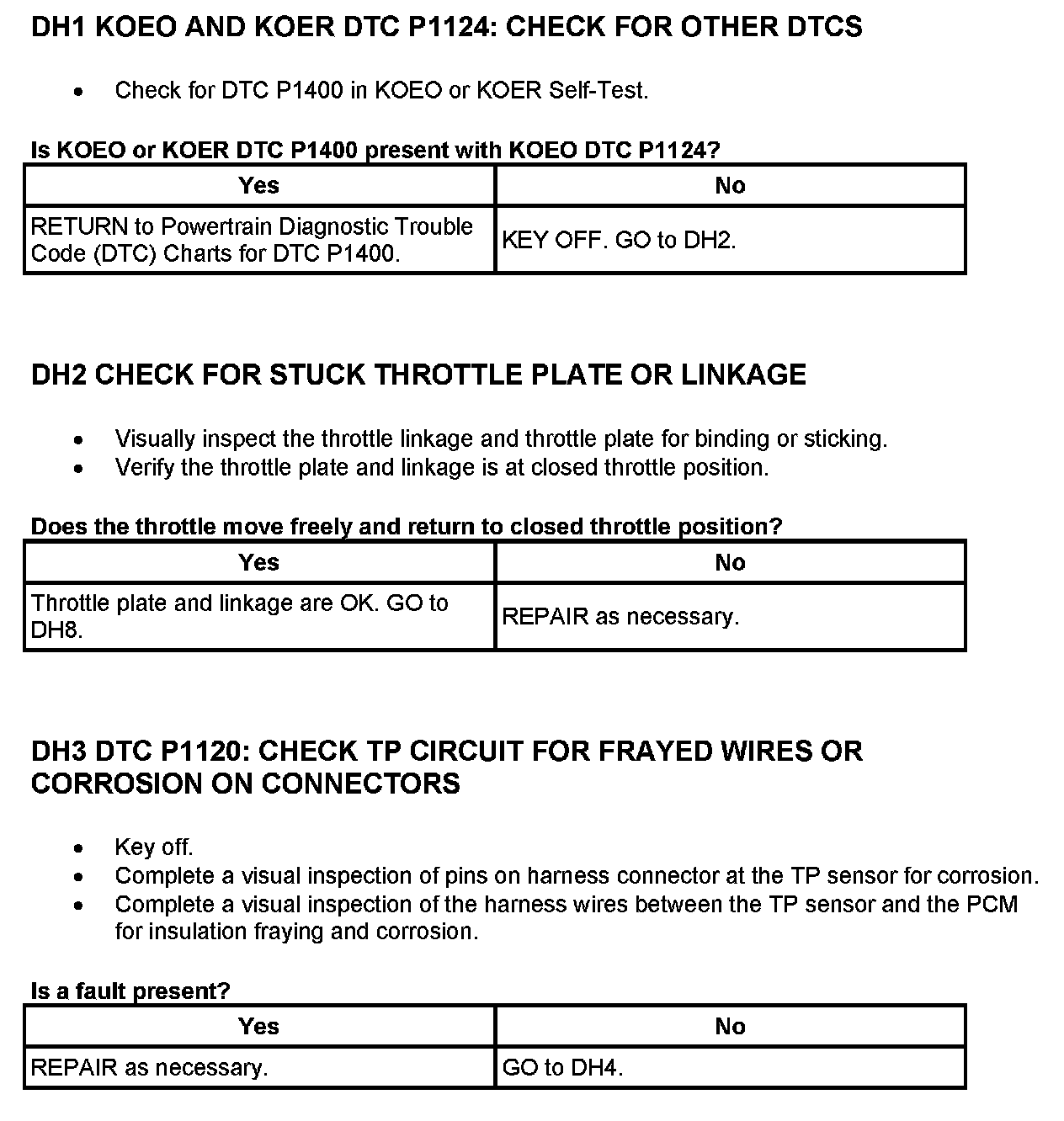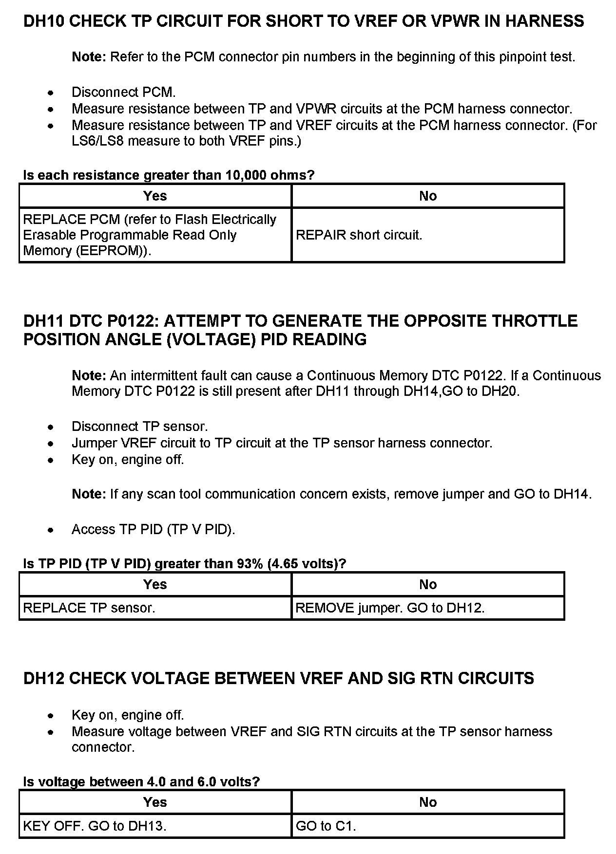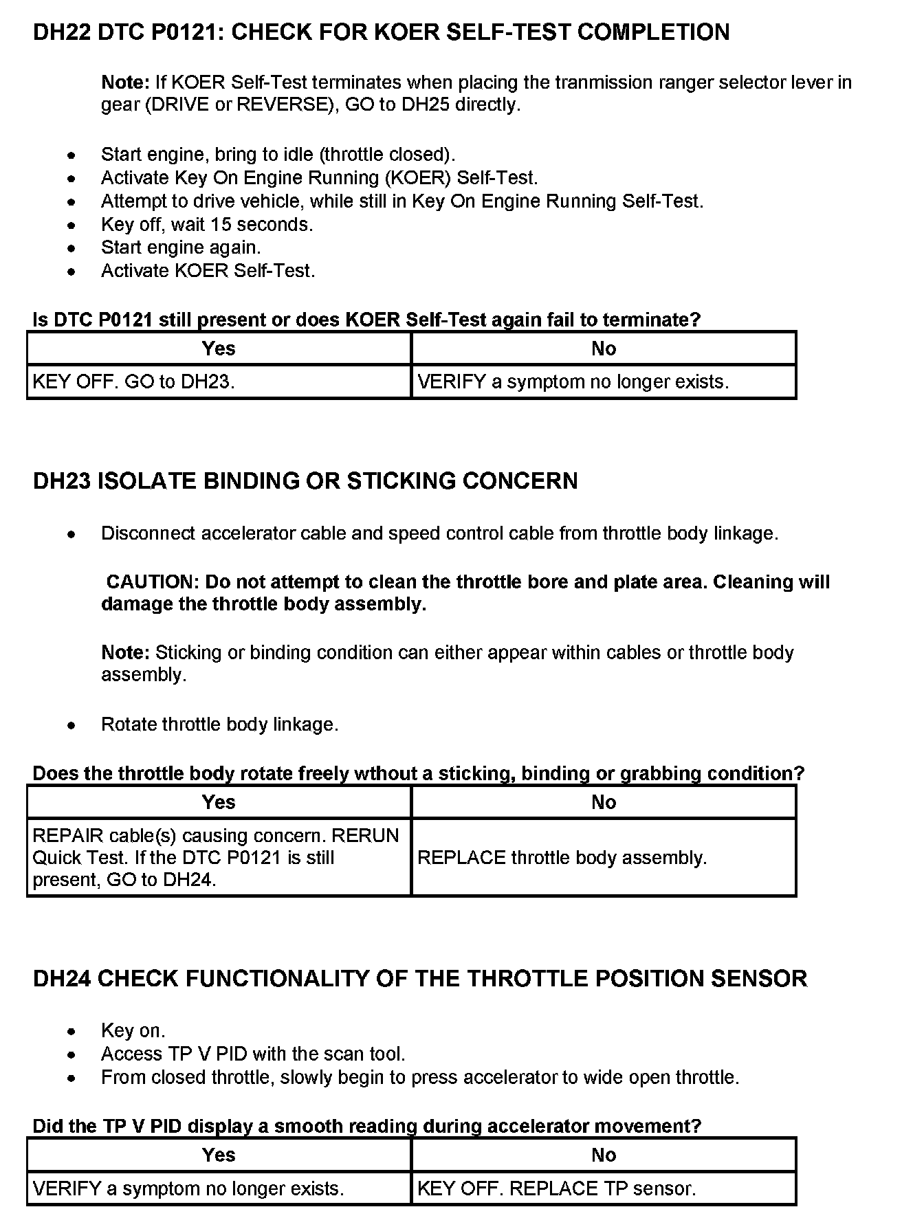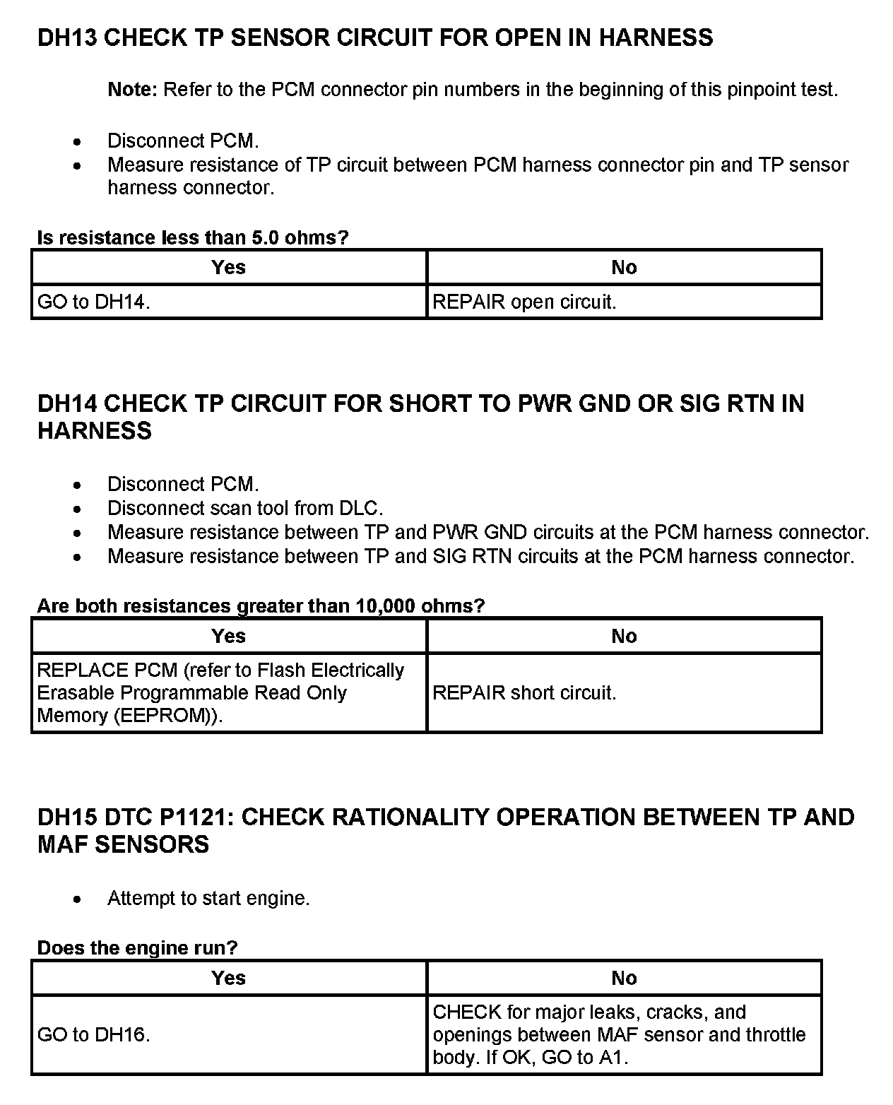 Tests DH: Throttle Position (TP) Sensor