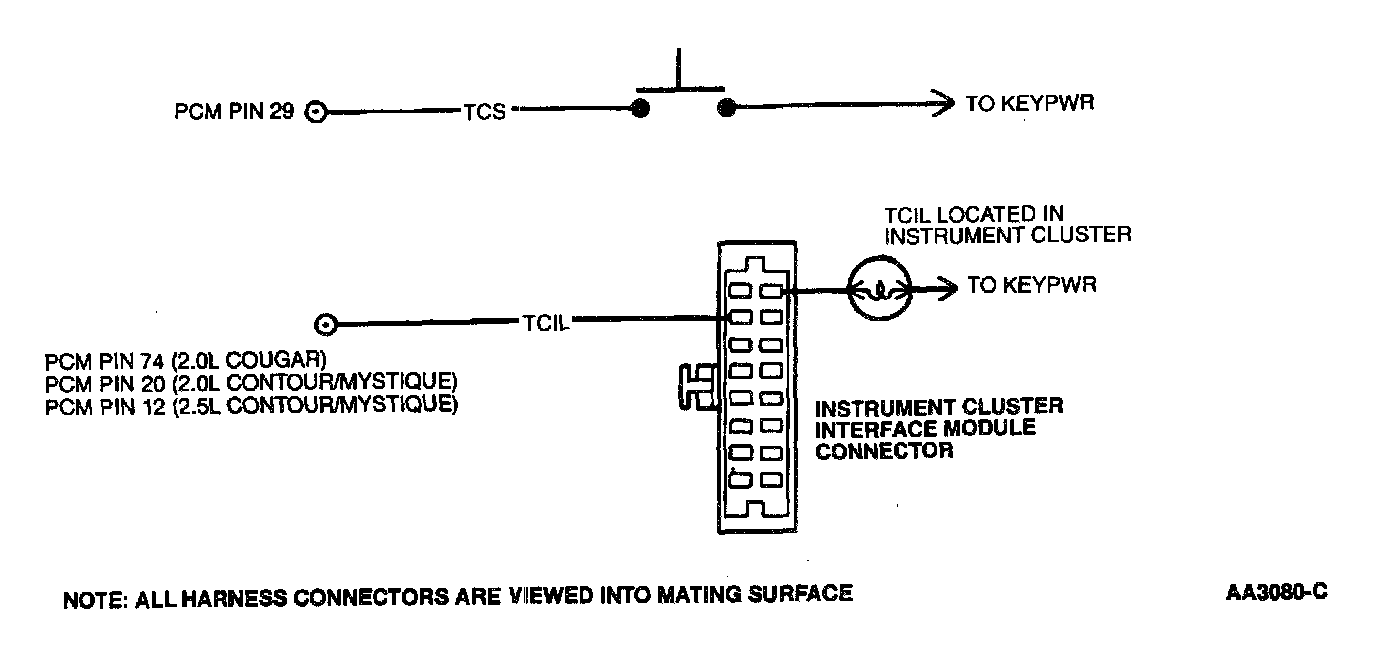 - Harness circuits: Transmission Control Indicator Lamp (TCIL) and Transmission Control Switch (TCS)