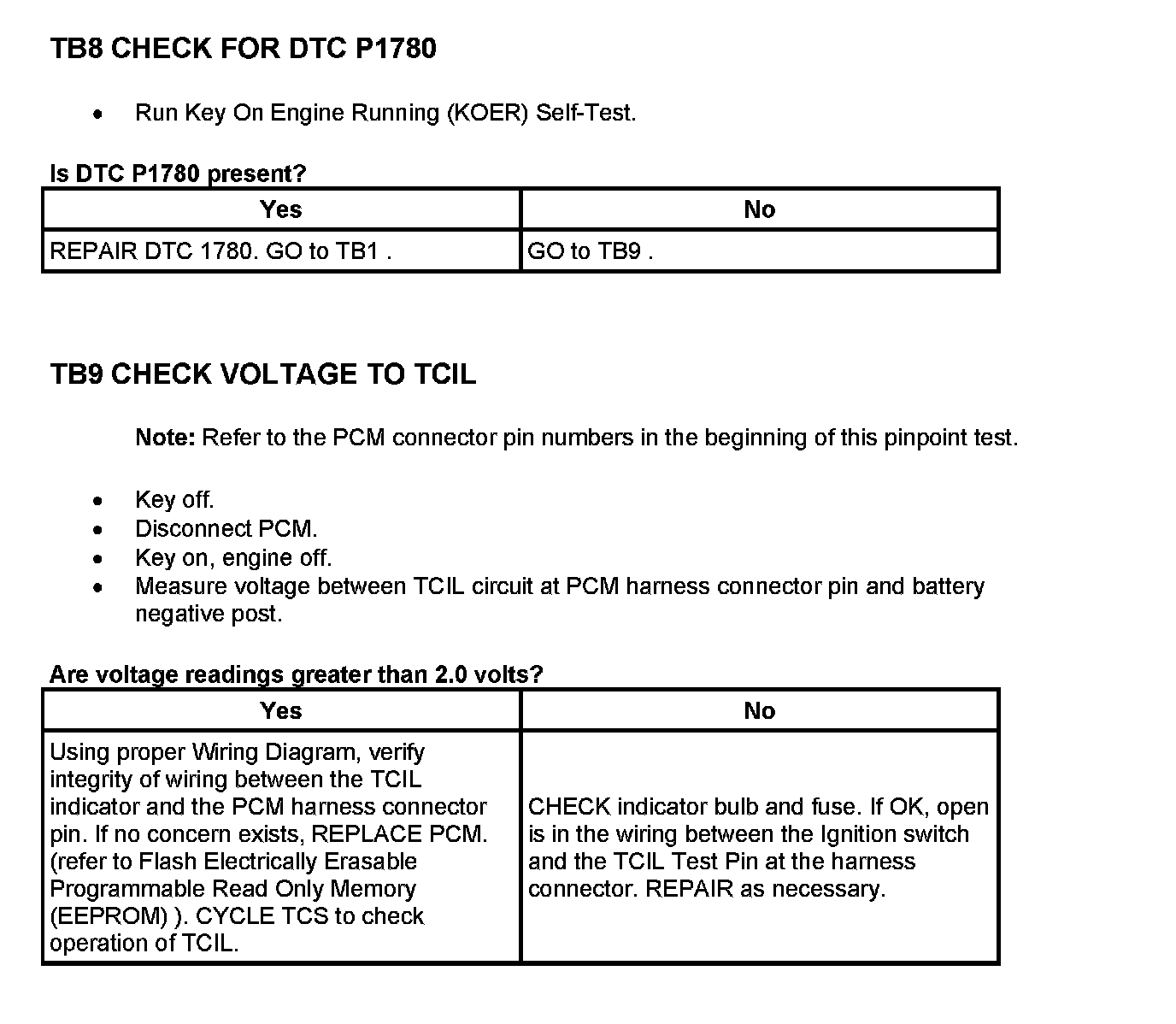Home >> Ford >> 2000 >> Excursion 2WD V10-6.8L VIN S >> Repair and Diagnosis >> Powertrain Management >> Computers and Control Systems >> Testing and Inspection >> Pinpoint Tests >> Tests TB: Trans Control Switch/Trans Control Indicator Lamp