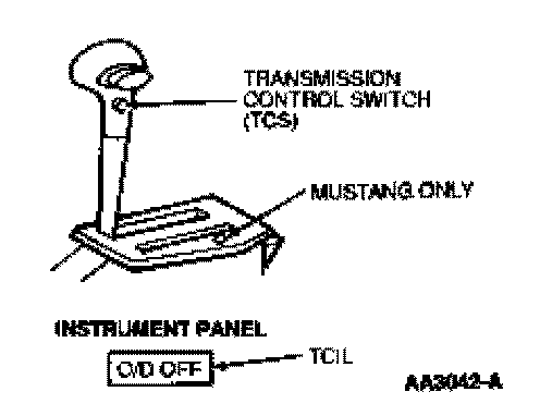 The transmission control switch (TCS) (Figures 41 and 42) signals the PCM with keypower whenever the TCS is pressed. On vehicles with this feature, the transmission control indicator lamp (TCIL) lights when the TCS is cycled to disengage overdrive. The operator of the vehicle controls the position of the TCS.