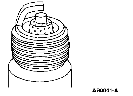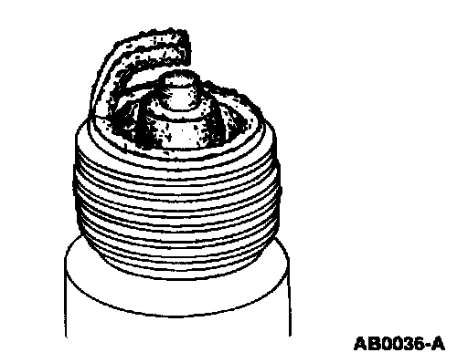 ^ Check for wet, black deposits on the insulator shell bore electrodes, caused by excessive oil entering the combustion chamber through worn rings and pistons, excessive valve-to-guide clearance or worn or loose bearings.