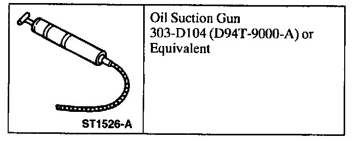 2. Remove the plug. Using special tool 303-D104 (D94T-9000-A) draw the oil from the high-pressure oil pump reservoir.
