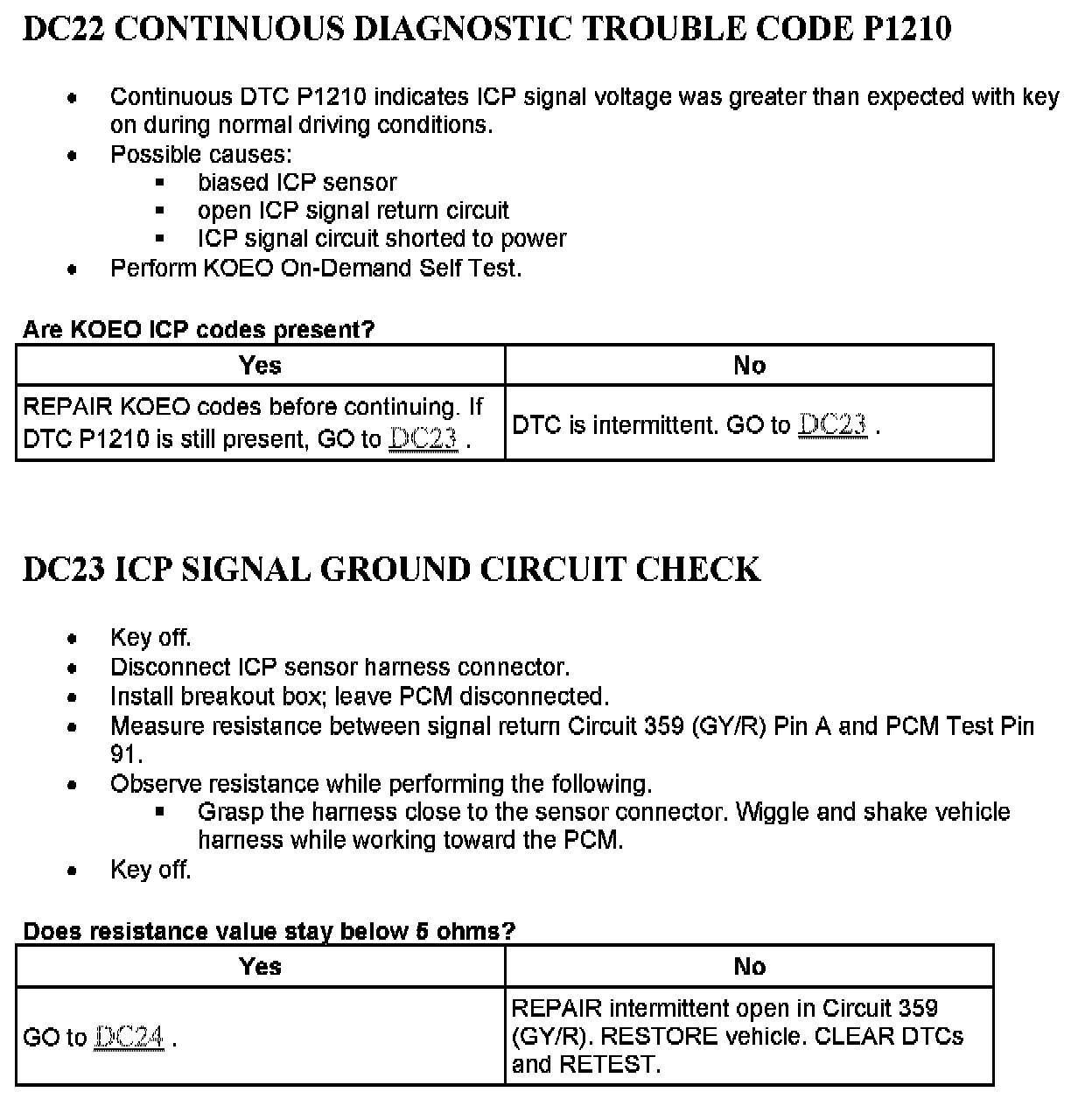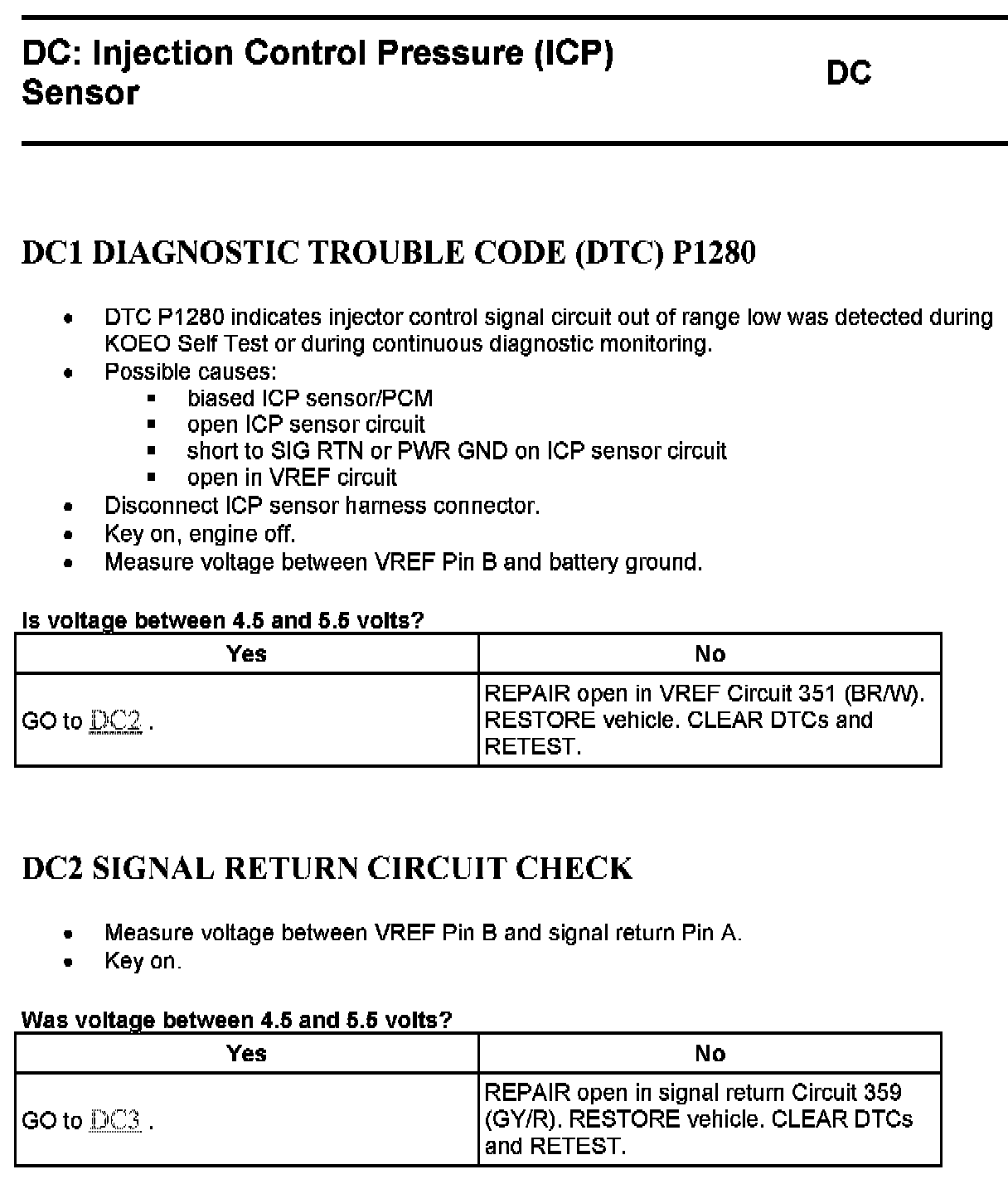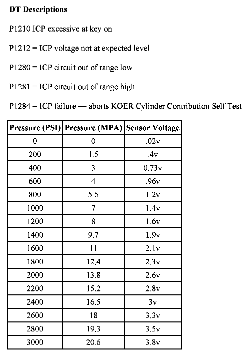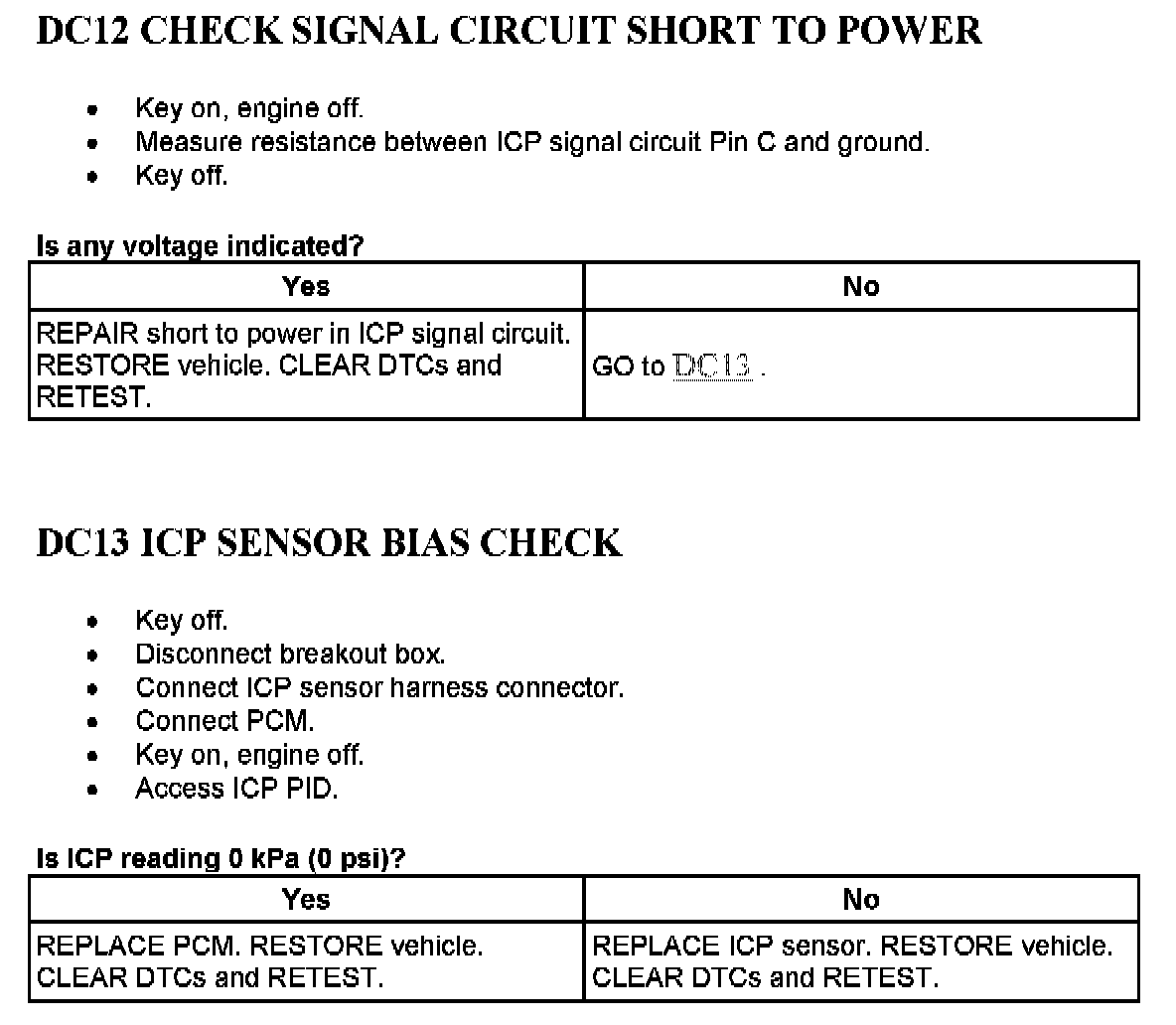 Tests DC: Injection Control Pressure (ICP) Sensor