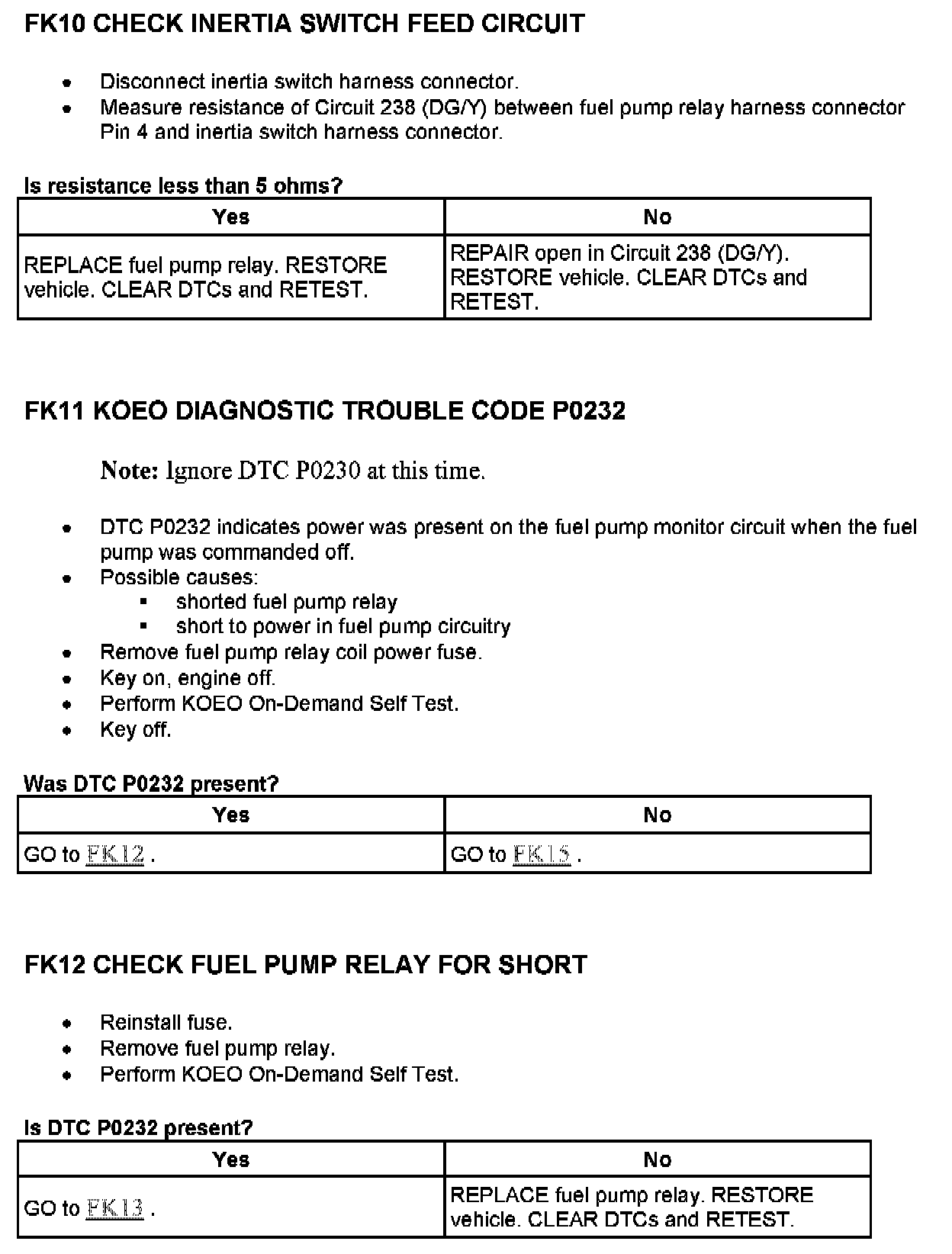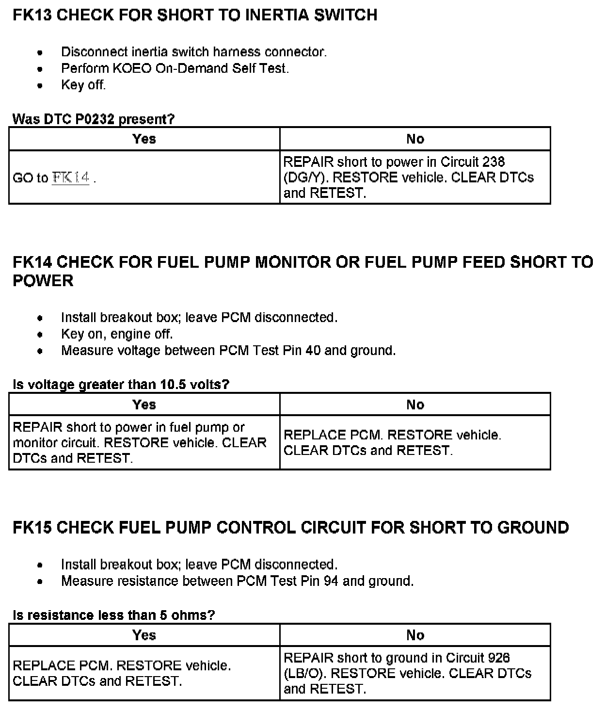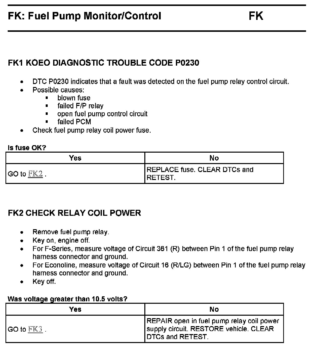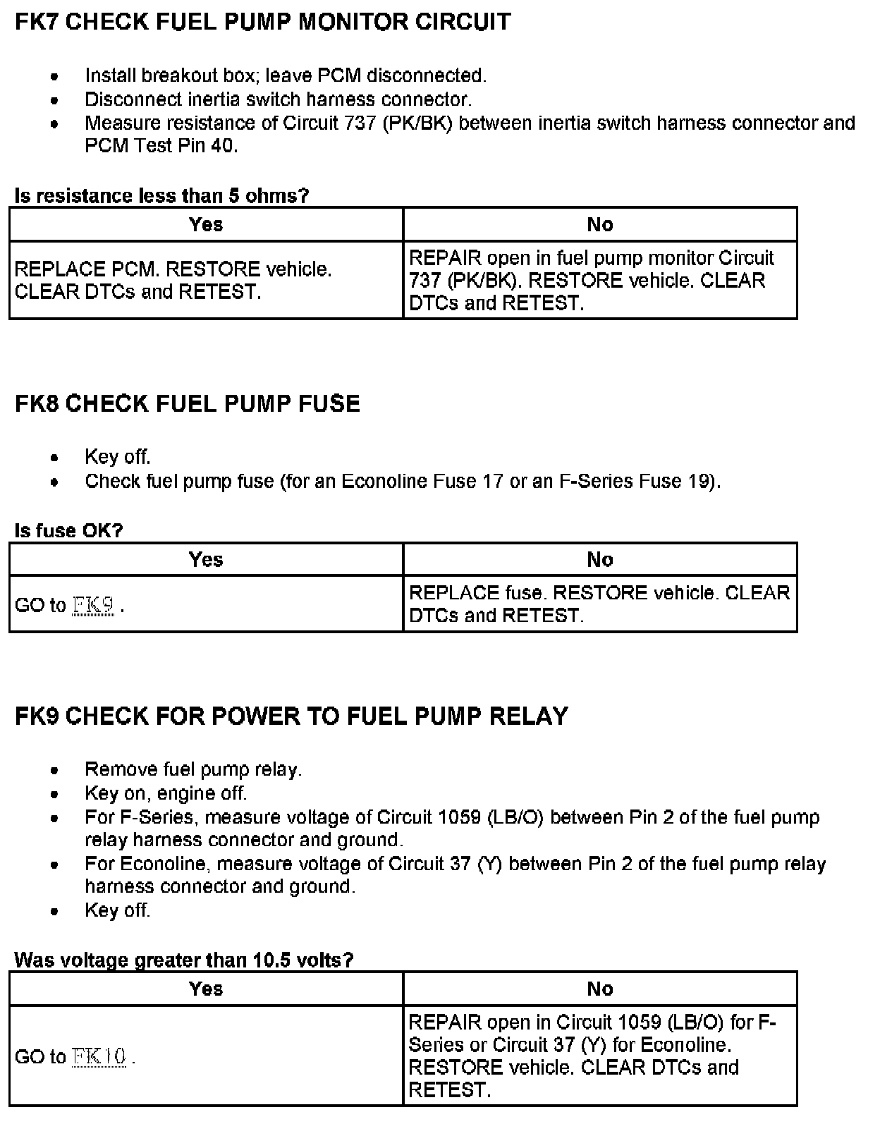Tests FK: Fuel Pump Monitor/Control