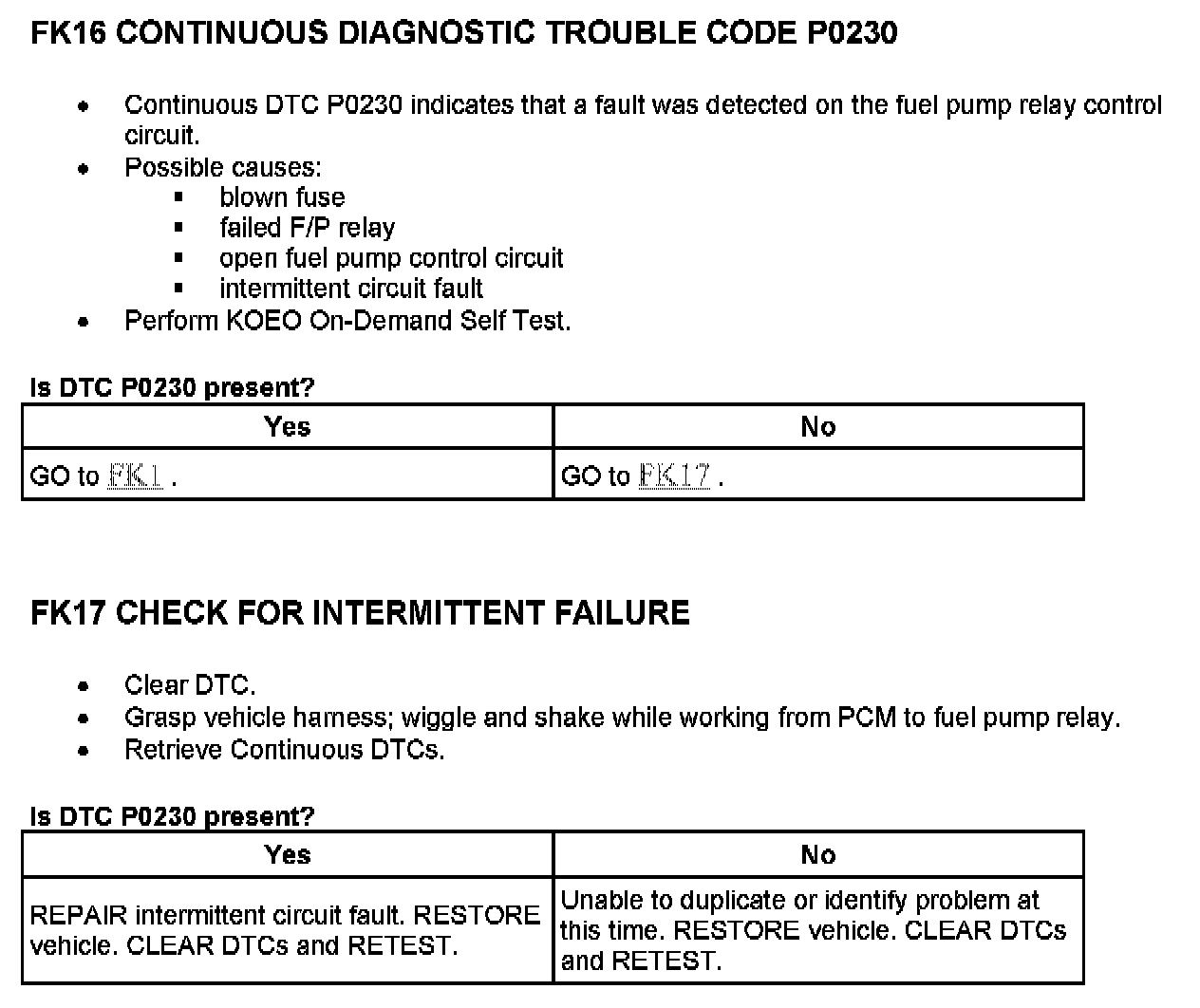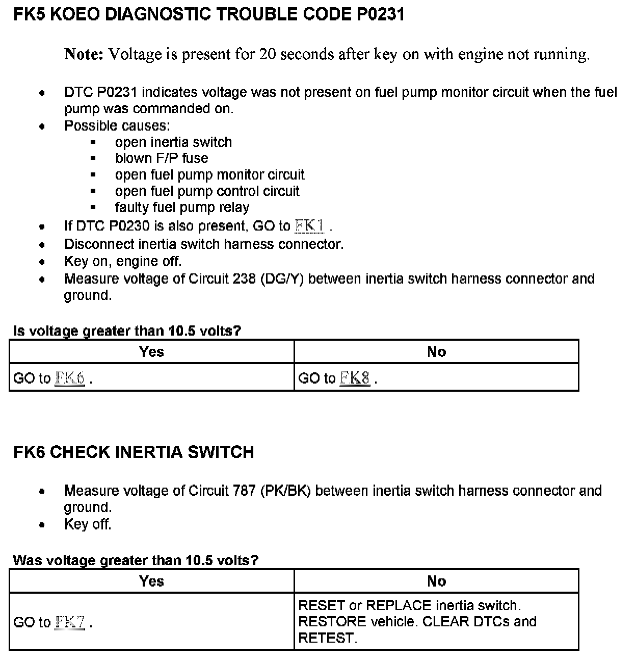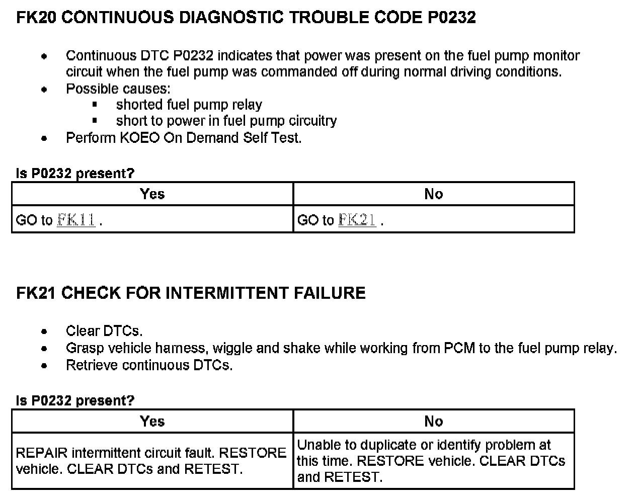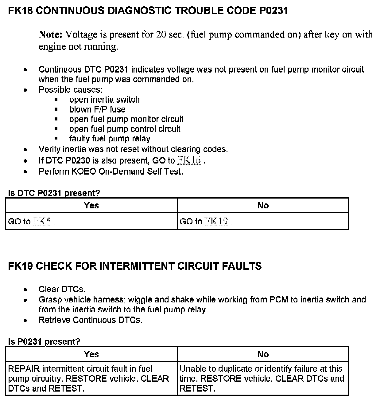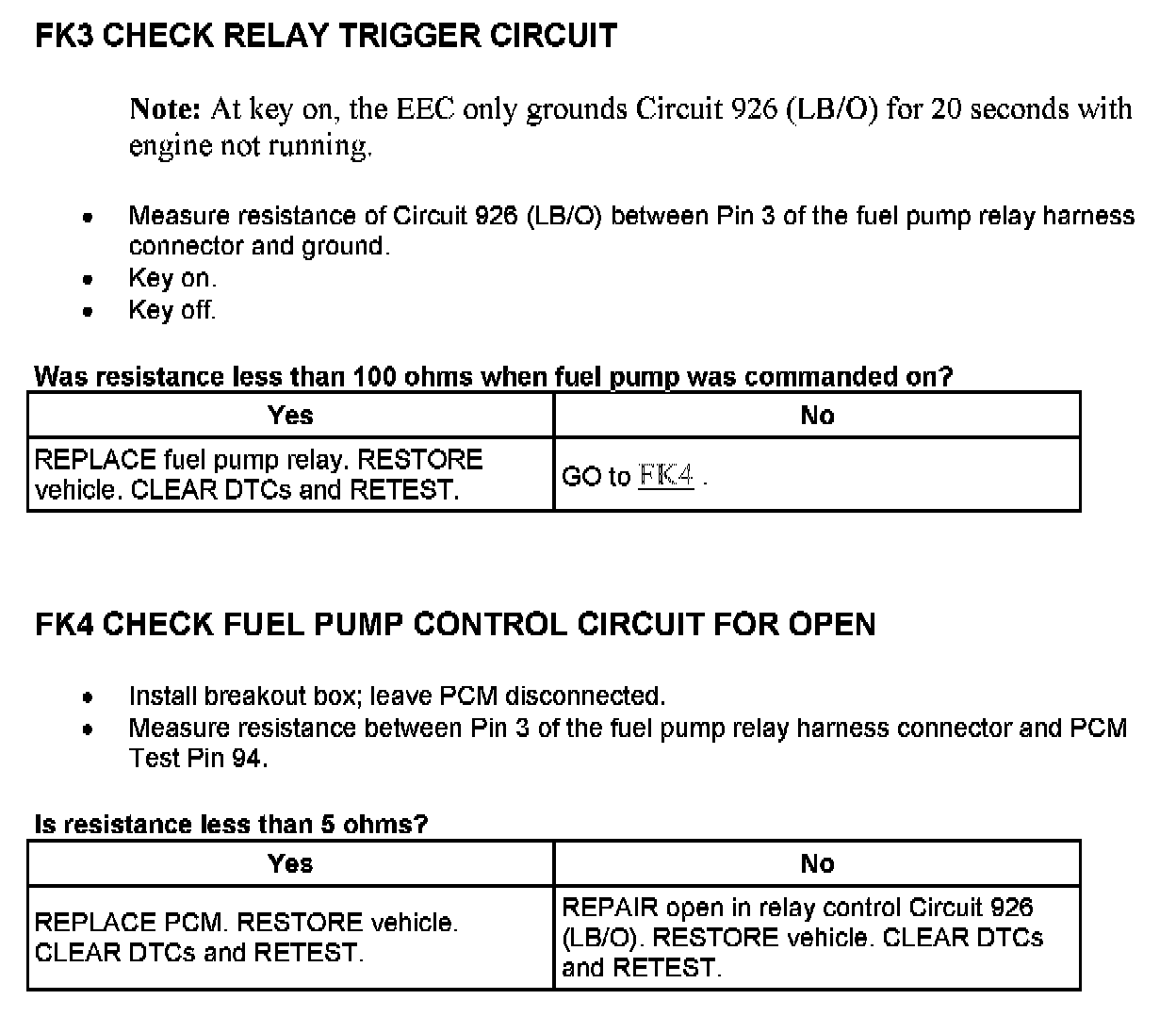 Tests FK: Fuel Pump Monitor/Control