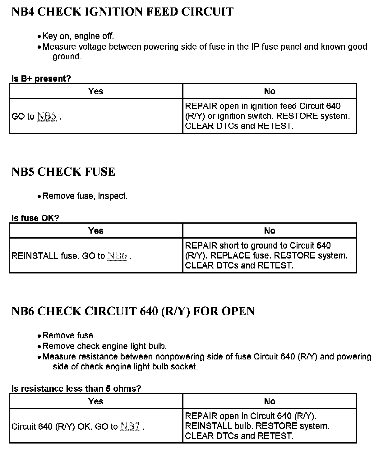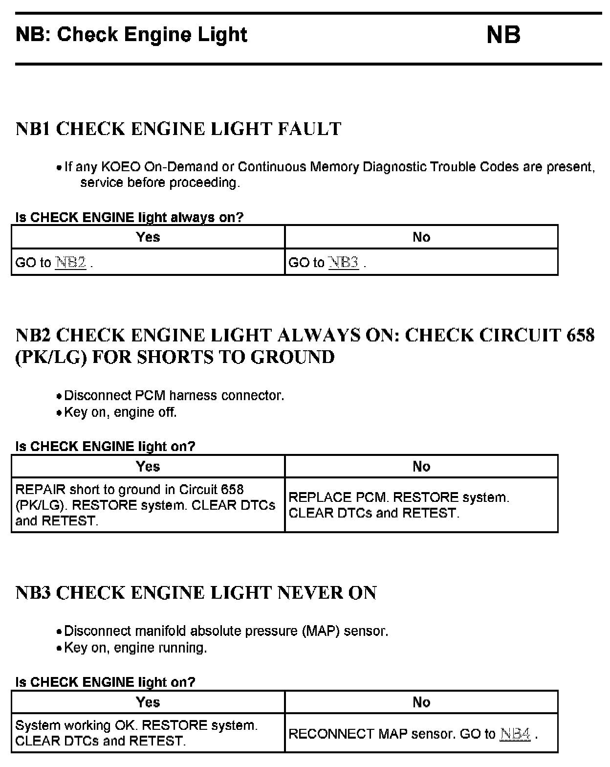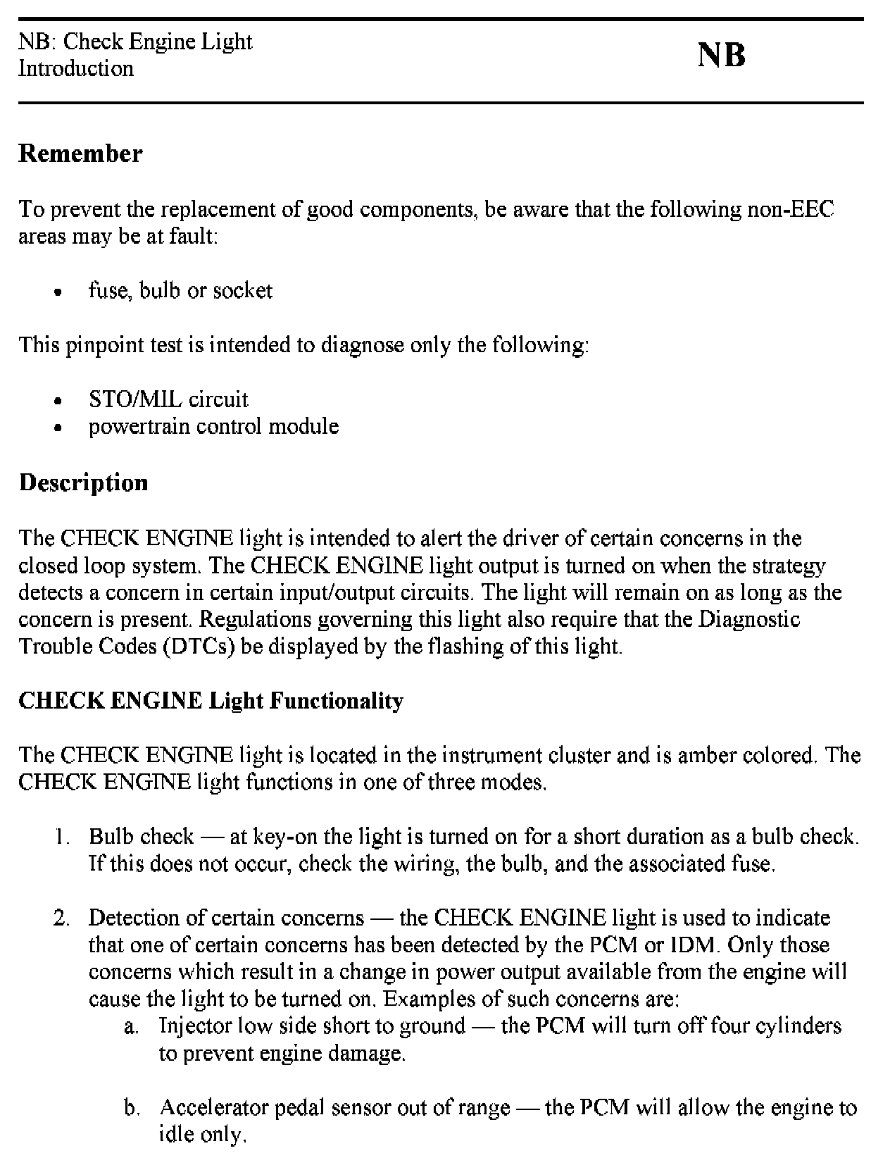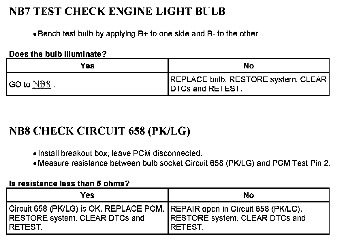 Tests NB: Check Engine Light