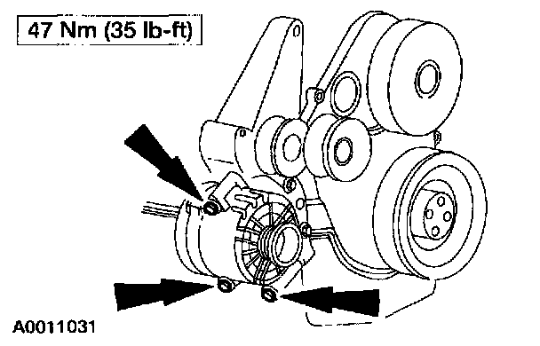 2. Remove the accessory drive belt from the generator. For additional information, refer to Drive Belts, Mounts, Brackets and Accessories.
