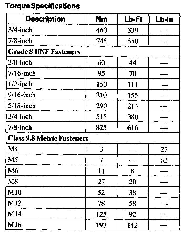 Torque Specifications (Part 1):