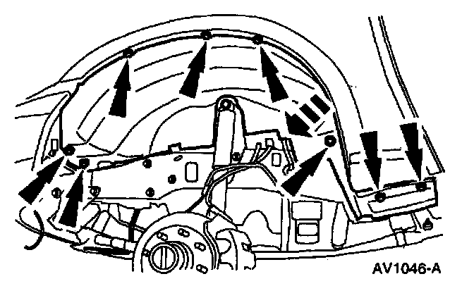 2. Remove the LH wheel and tire. For additional information, refer to Wheels, Tires and Alignment.