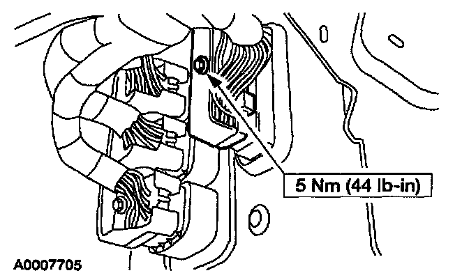 4. Loosen the bolt and disconnect the powertrain control module (PCM) electrical connector.