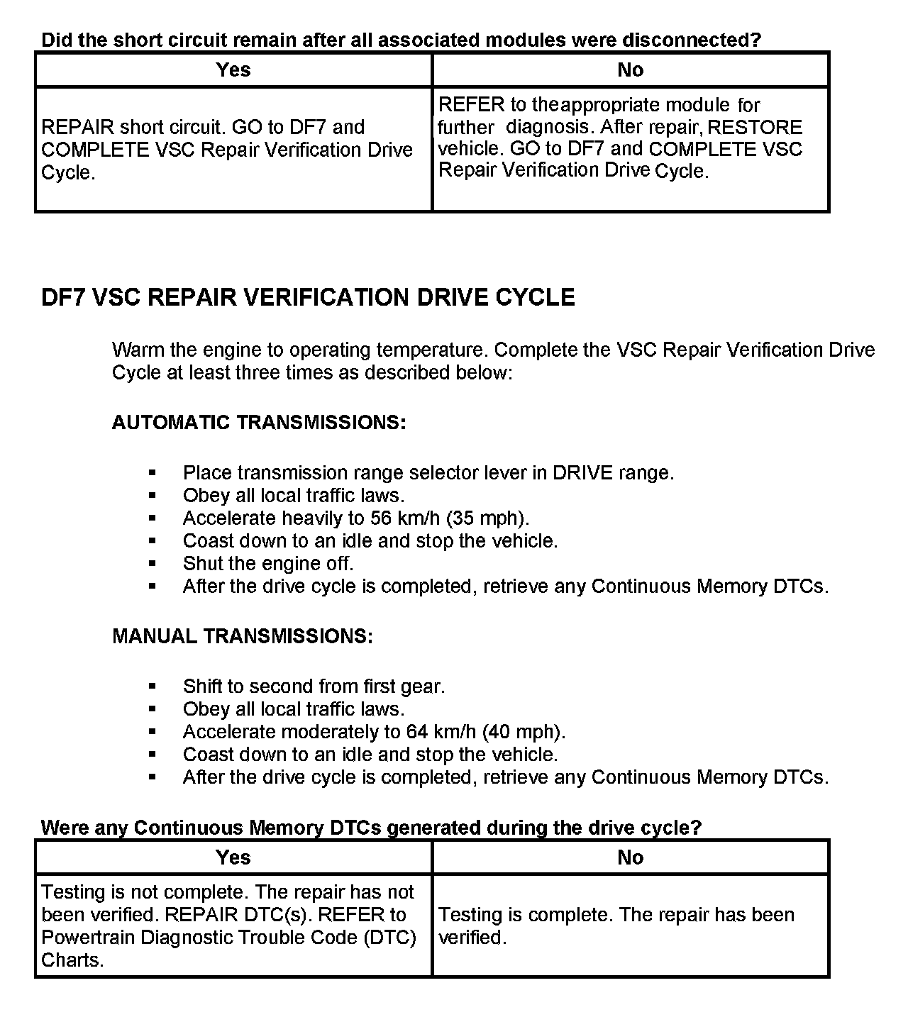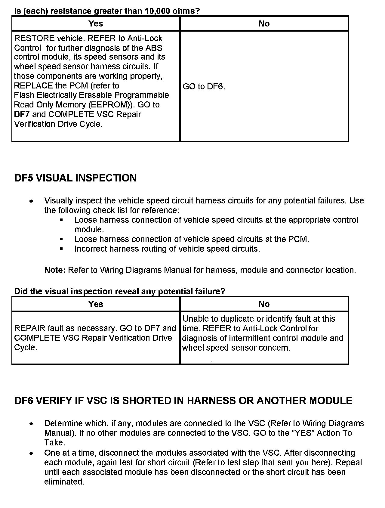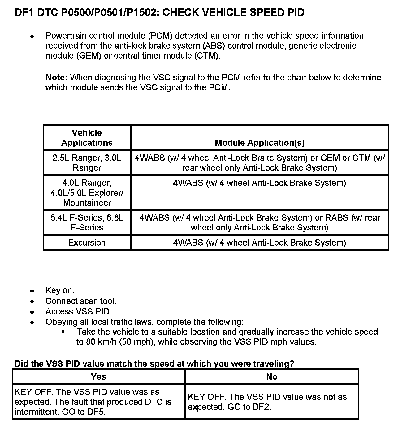 Tests DF: Vehicle Speed Circuit Check