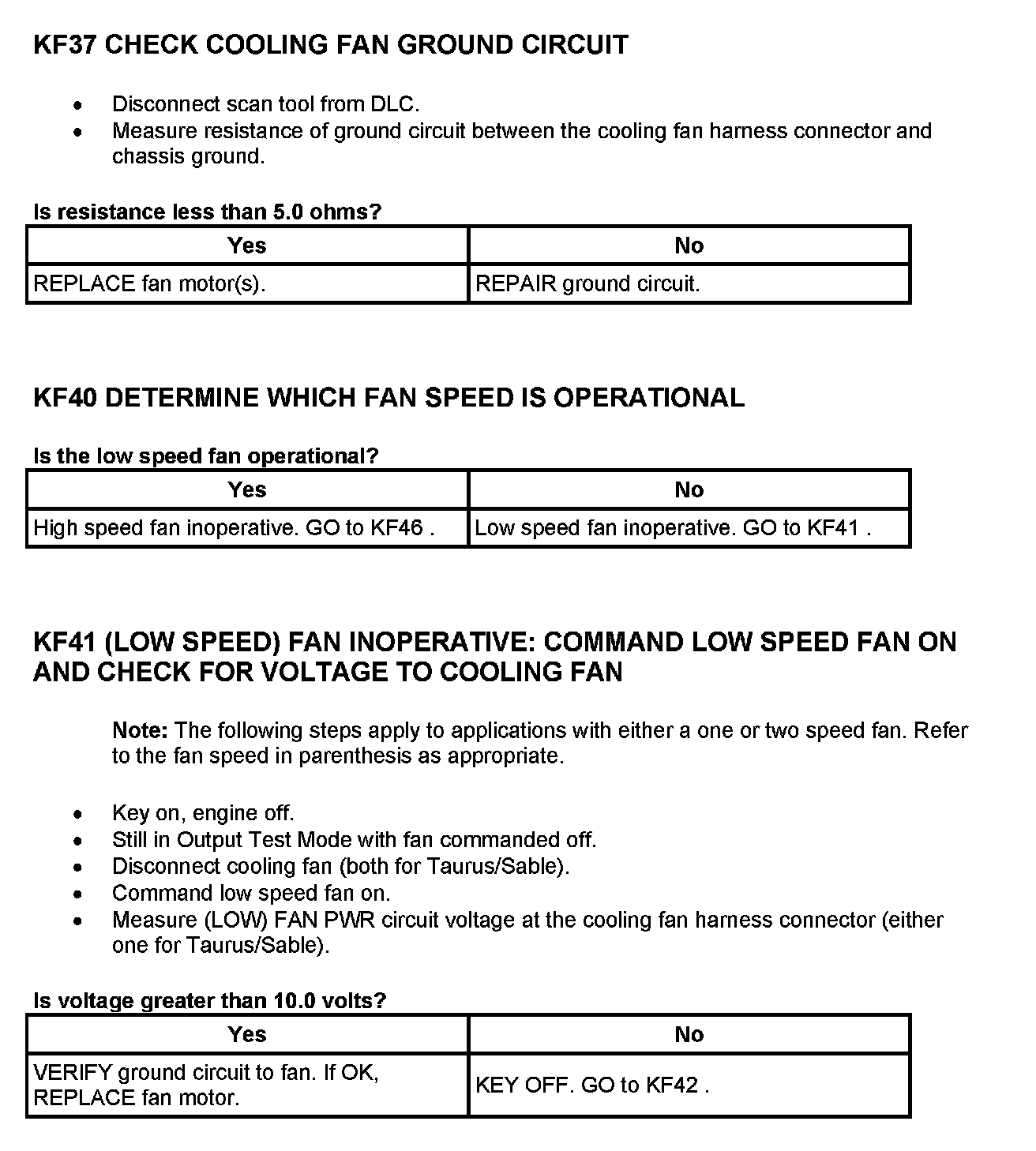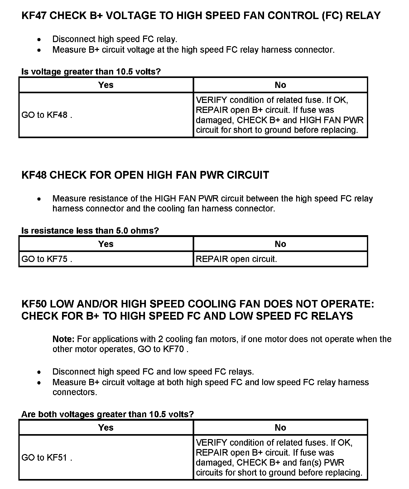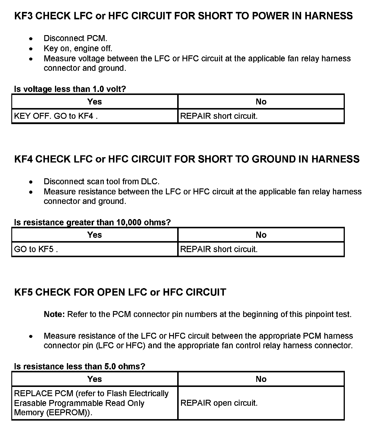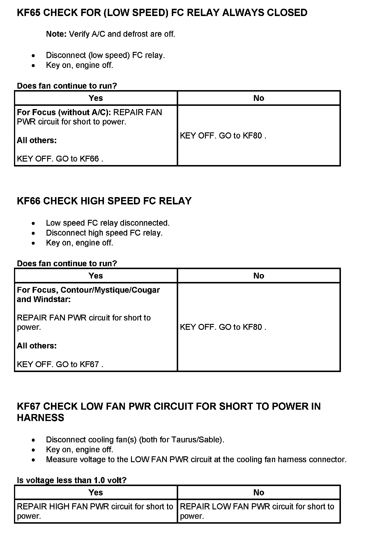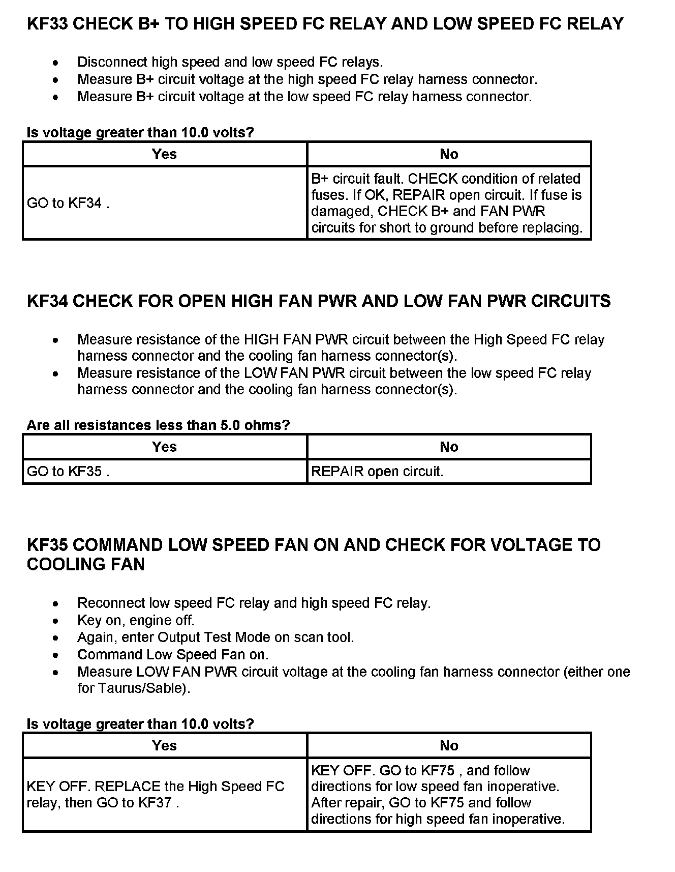 Home >> Ford >> 2000 >> Excursion 4WD V10-6.8L VIN S >> Repair and Diagnosis >> Powertrain Management >> Computers and Control Systems >> Testing and Inspection >> Pinpoint Tests >> Tests KF: Fan Control (FC) Relay