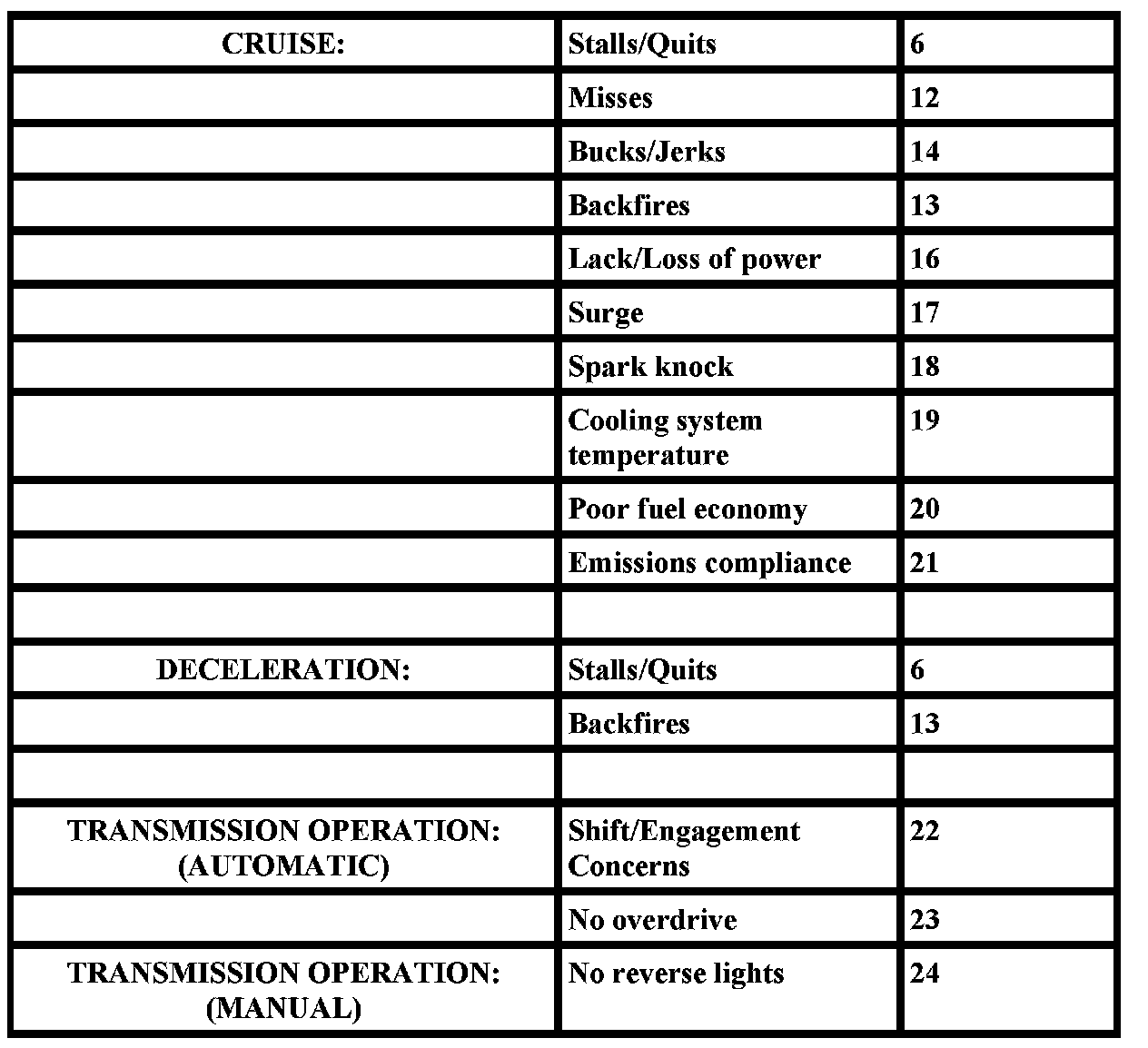 Home >> Ford >> 2000 >> Excursion 4WD V8-5.4L SOHC VIN L >> Repair and Diagnosis >> Powertrain Management >> Computers and Control Systems >> Testing and Inspection >> Scan Tool Testing and Procedures >> Normal Scan Data Values - Includes PIDs >> Reference Values >> Reference Value Symptom Chart
