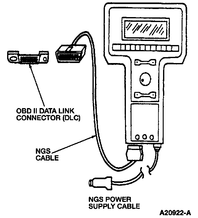 The NGS Tester or generic scan tool must be connected to the Data Link Connector (DLC) for communication with the vehicle.
