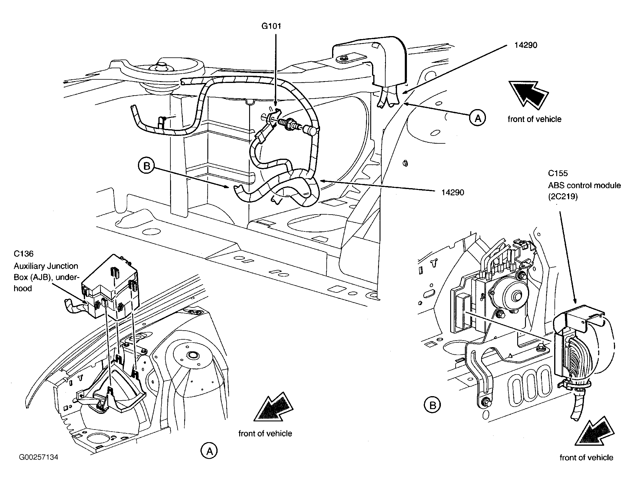 | ABS Control Module | Right front side of engine compartment. See Figure . |