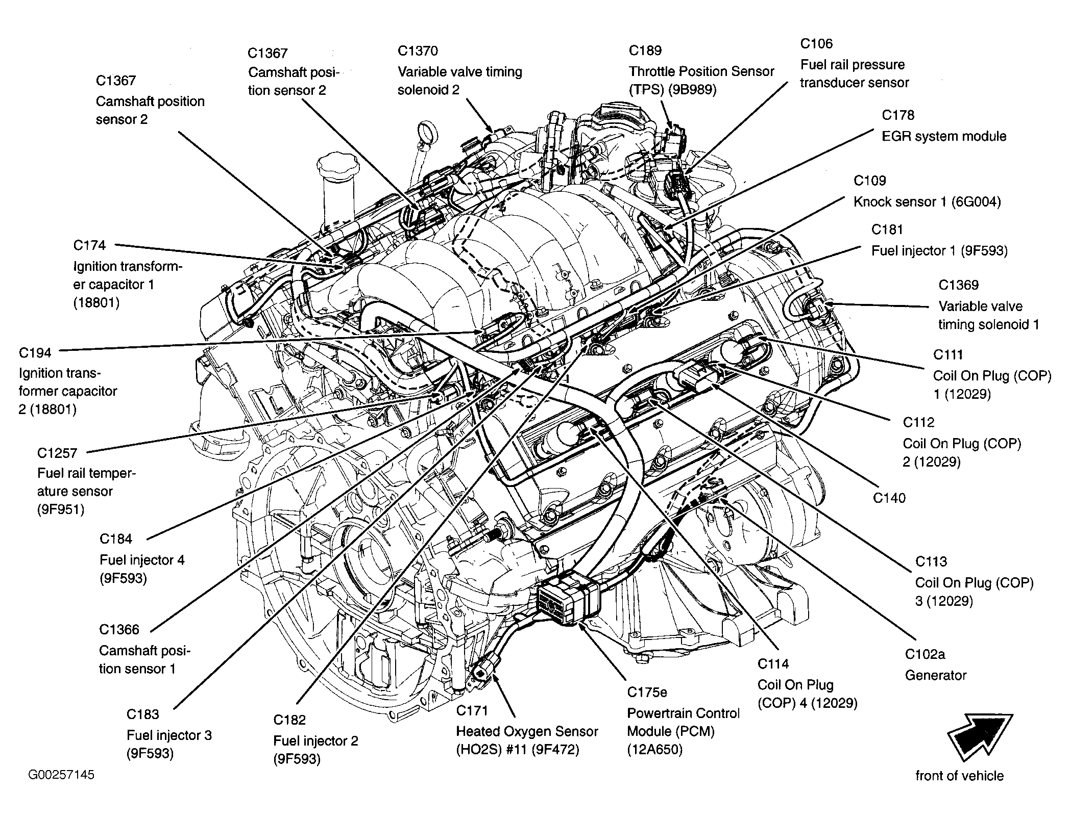 | Powertrain Control Module (PCM) | Right rear of engine compartment. See Figure . |