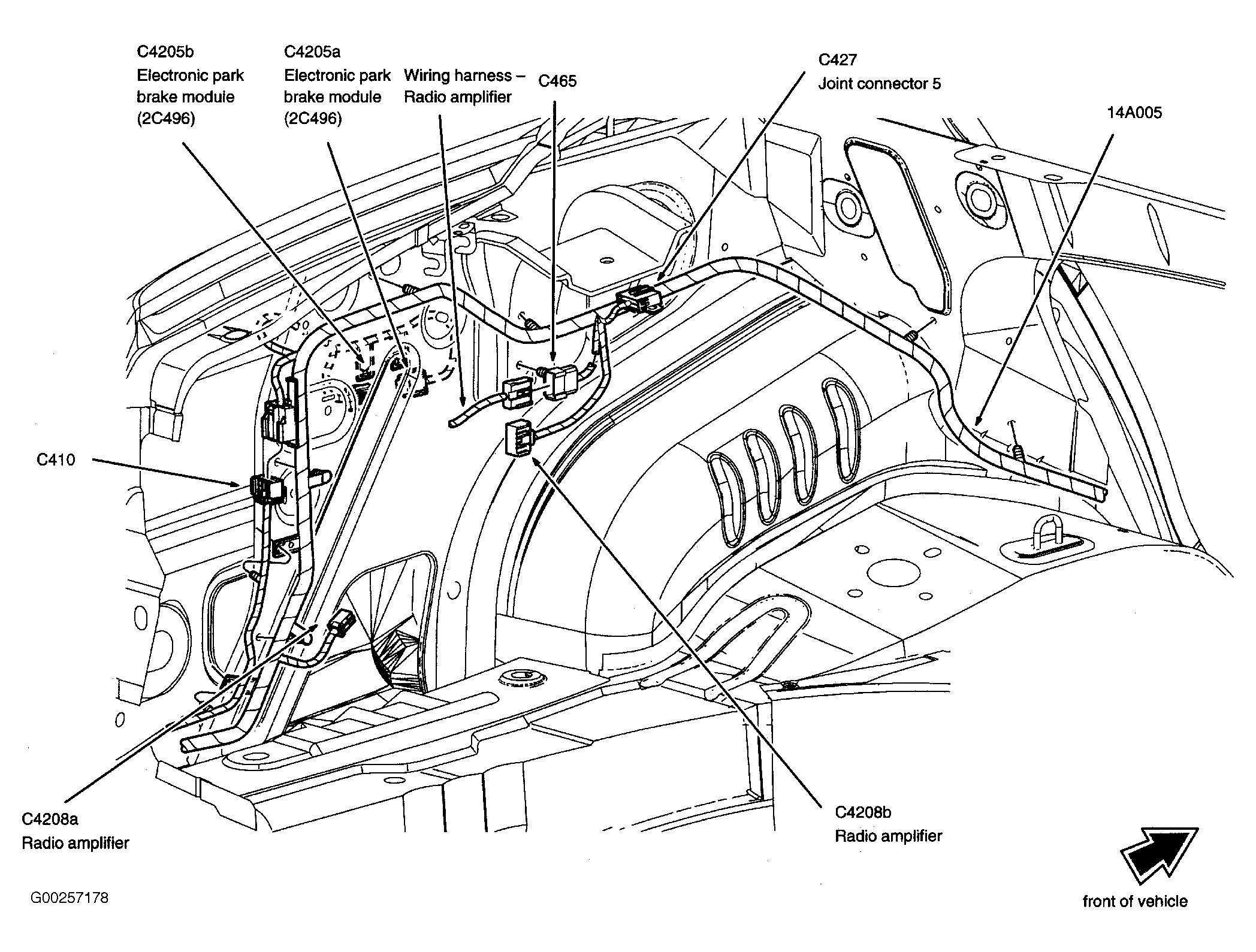 | Electronic Park Brake Module | At left side of luggage compartment. See Figure . |