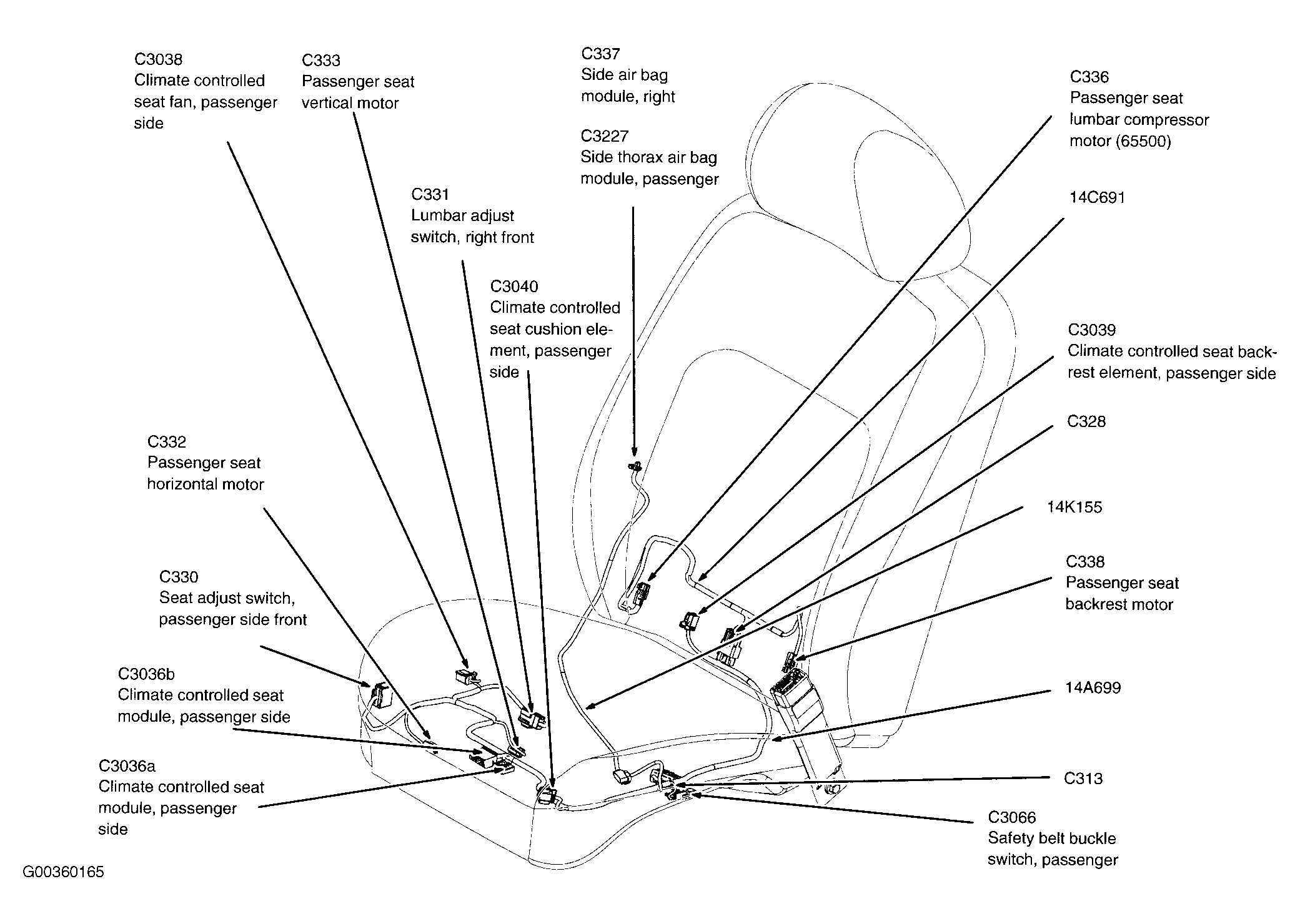 | Climate Controlled Seat Module (Passenger Side) | Under right front seat. See Figure . |