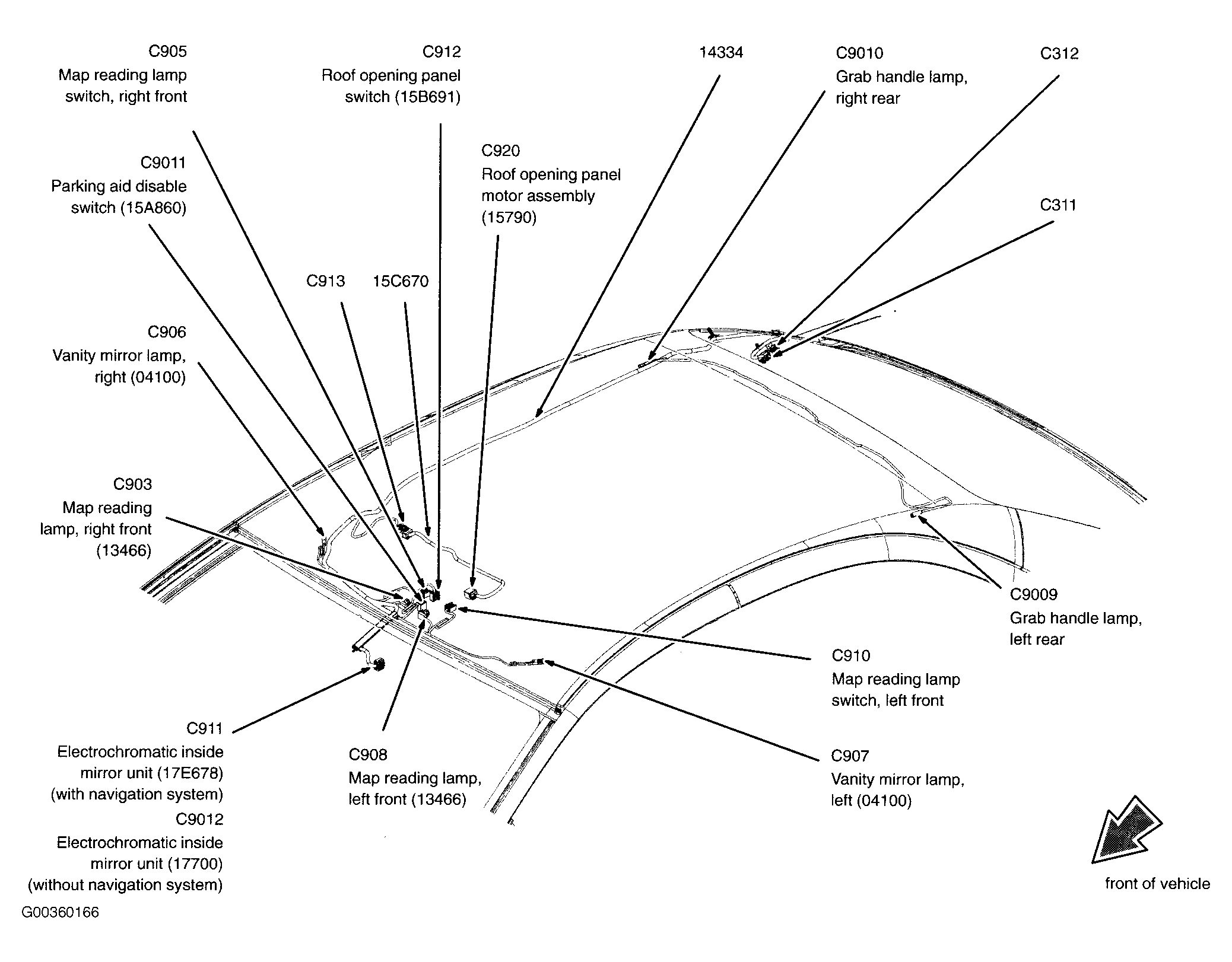 | Electrochromatic Inside Mirror Unit | In center of roof panel. See Figure . |
