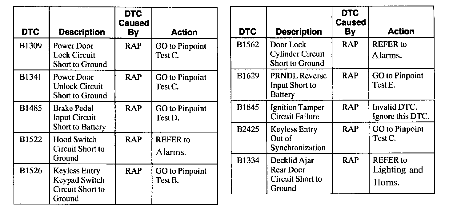 RAP Module Diagnostic Trouble Code (DTC) Index