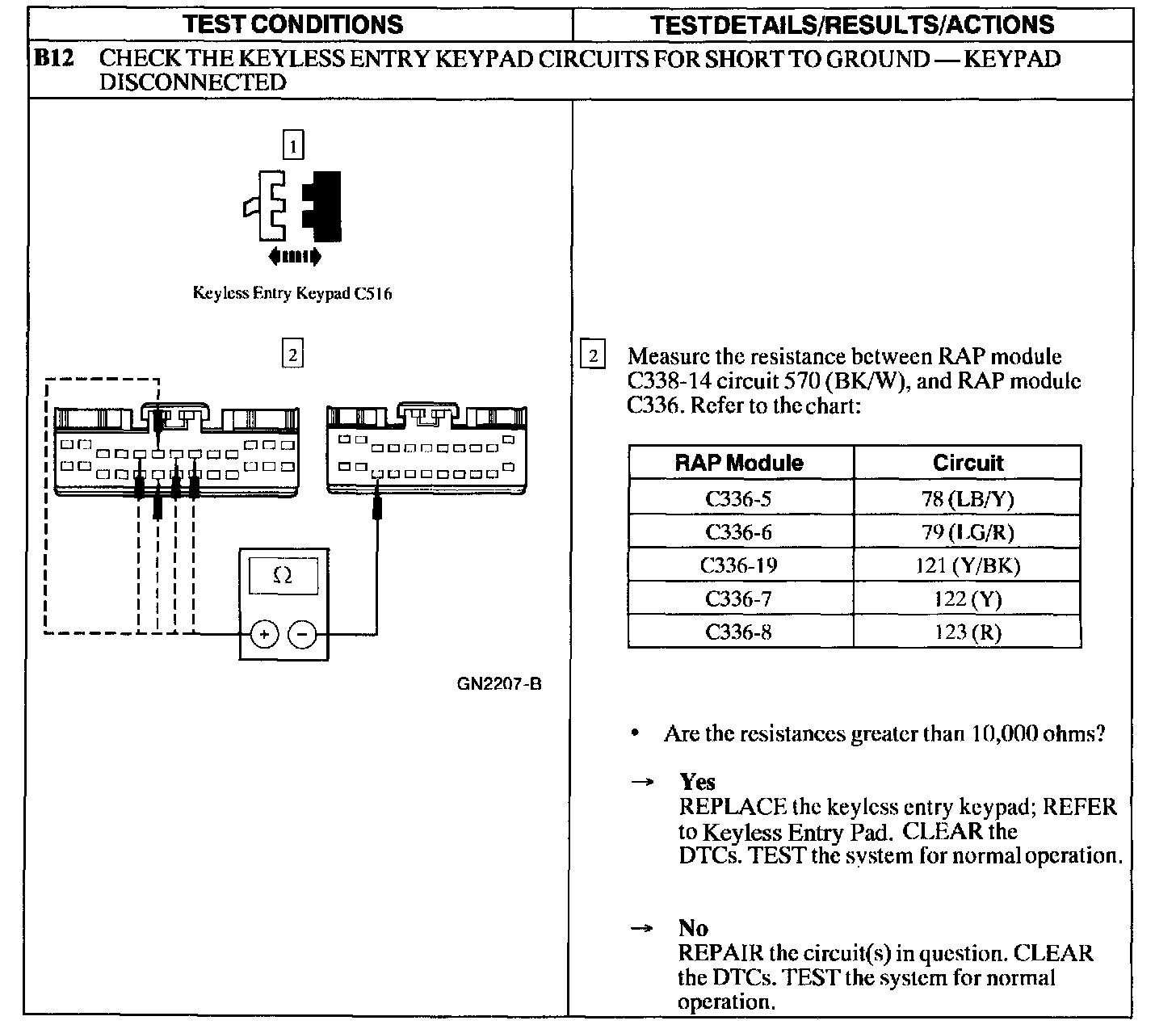Test B: Doors Do Not Lock/Unlock Using the Keyless Entry Keypad