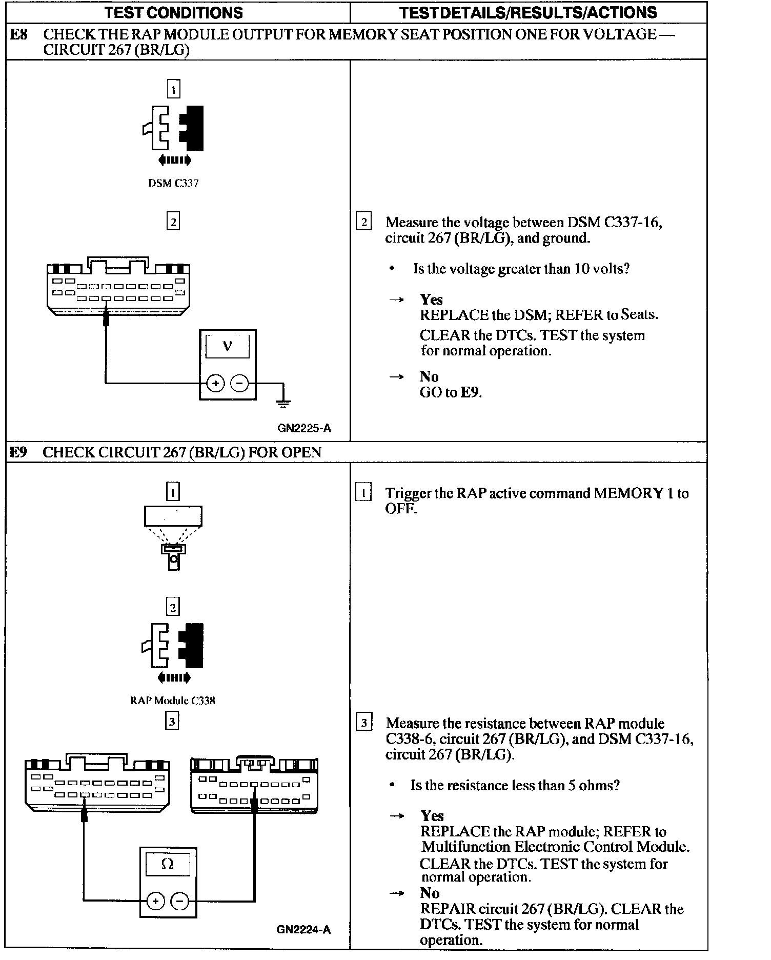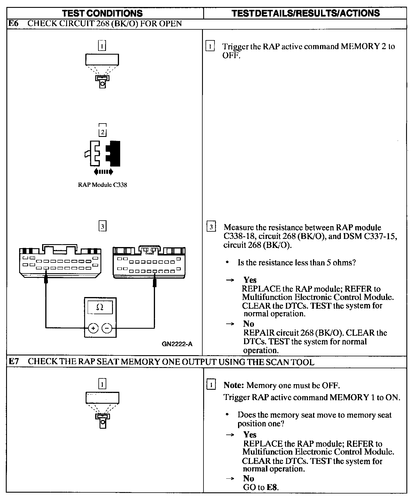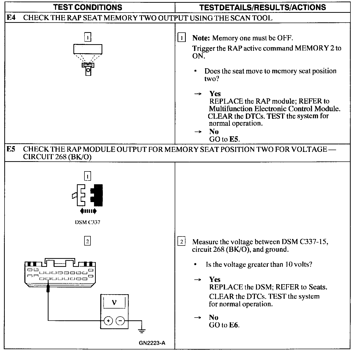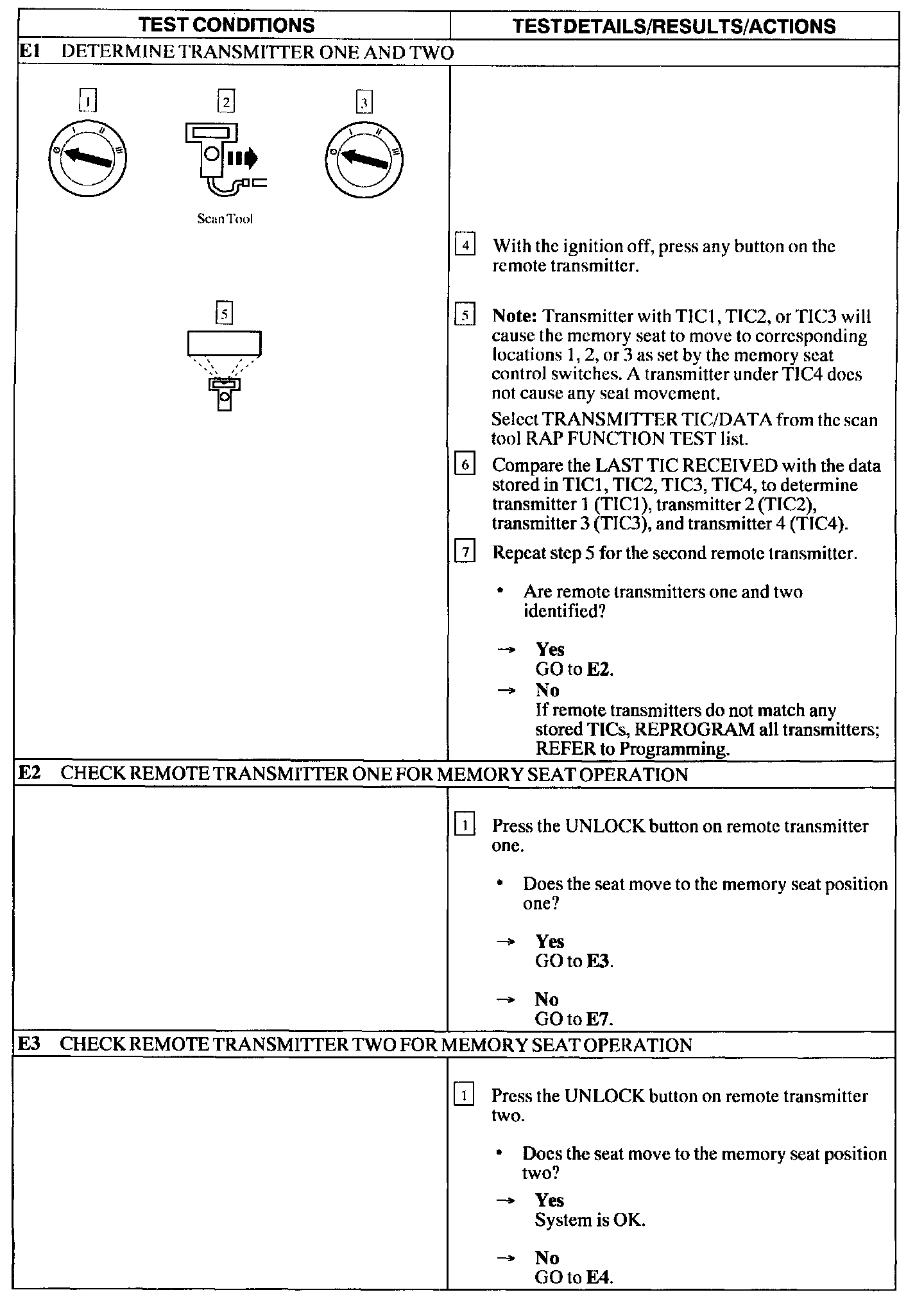 Test E: Memory Seat Does Not Operate Properly Using the Remote Transmitter