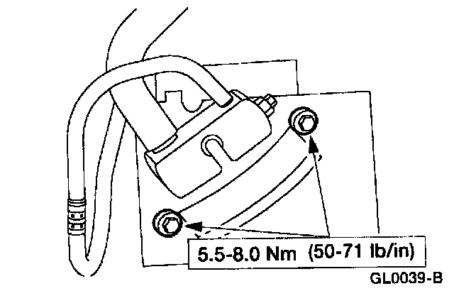 - Lubricate the new A/C manifold O-rings with PAG Compressor Oil, YN-12-C, F7AZ-19589-DA or equivalent meeting Ford specification WSH-MC1231-B.