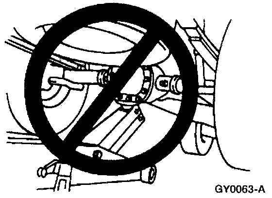 ^ Damage to the suspension, exhaust or steering linkage components may occur if care is not exercised when positioning the hoist adapters prior to lifting the vehicle.