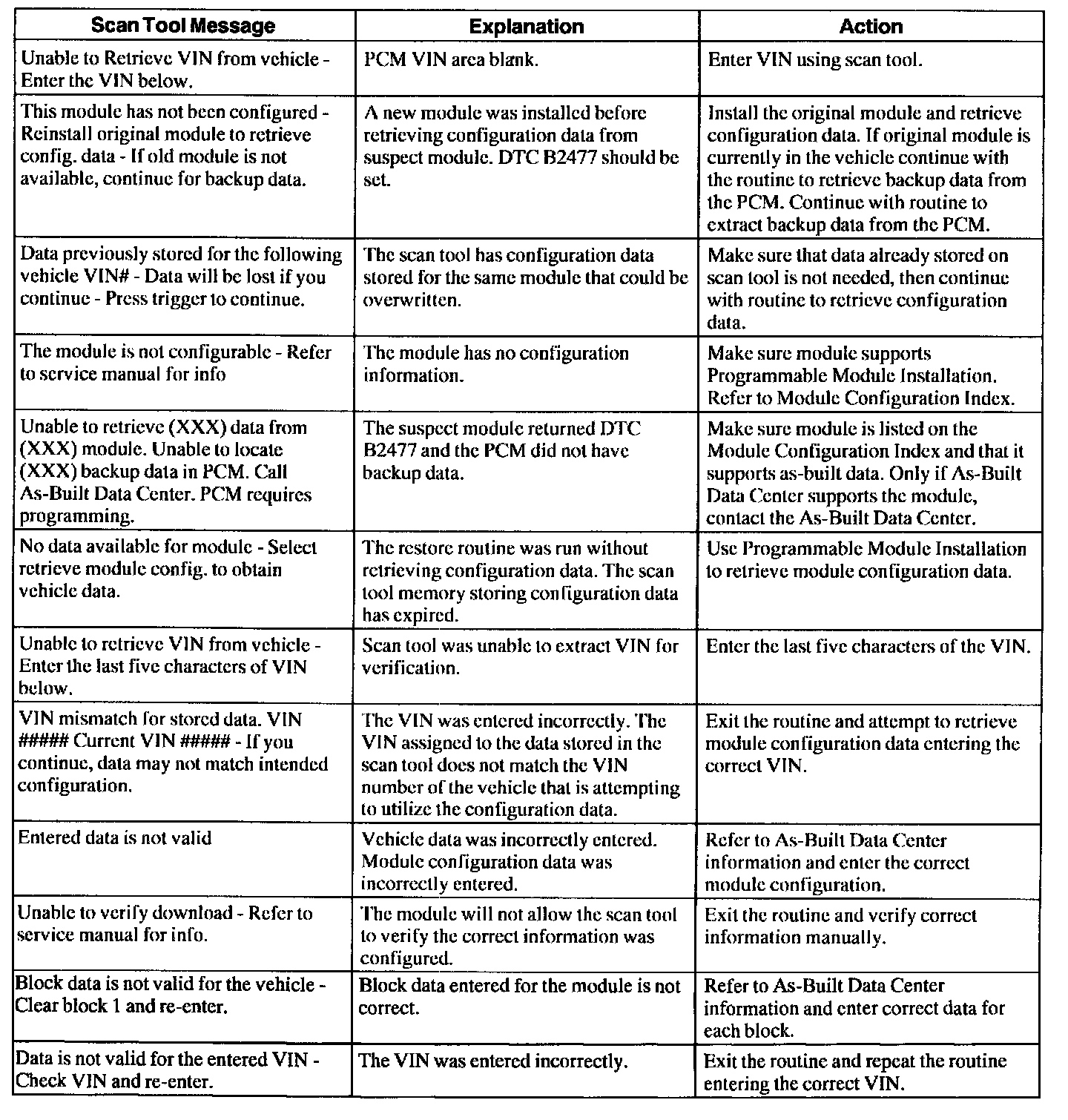 Scan Tool Message Index