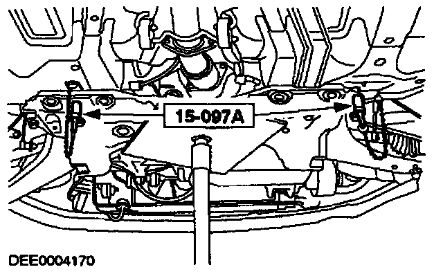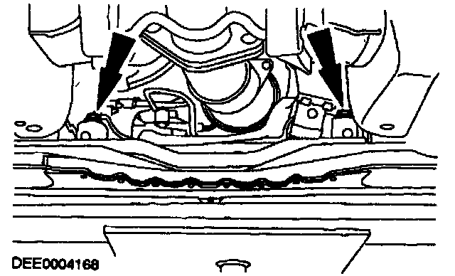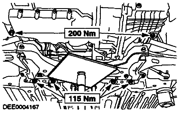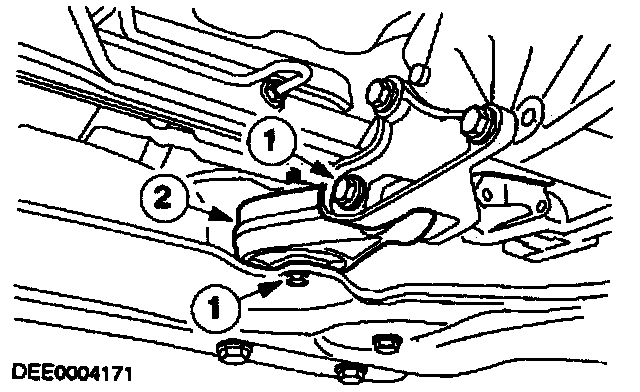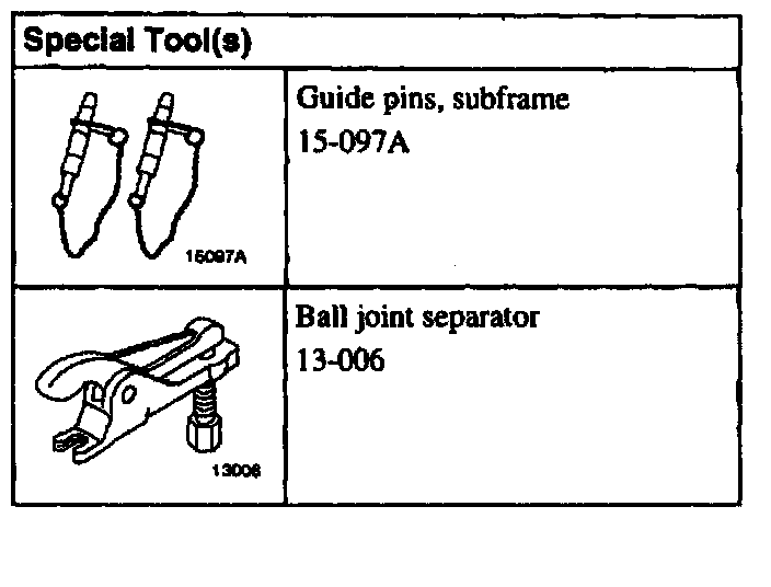 1. Position the subframe using the transmission jack and insert the guide pins.