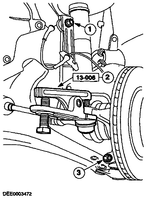 CAUTION: Do not damage the ball joint rubber seal or the ABS sensor ring.