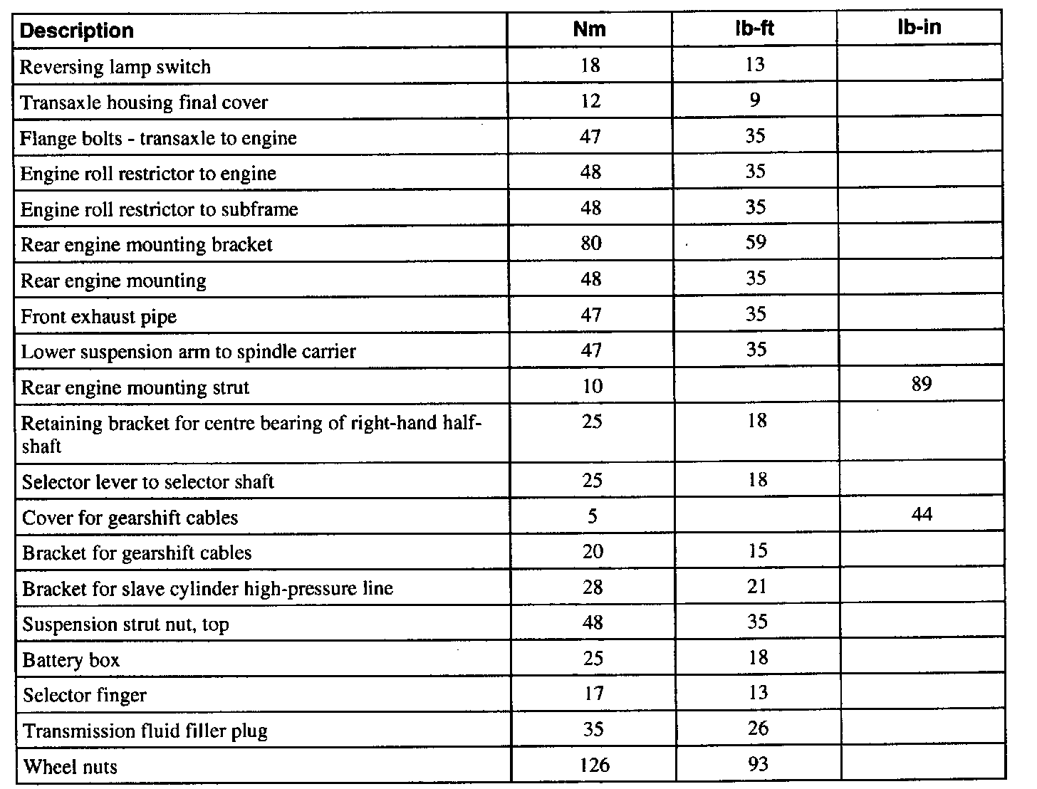 Torque Specifications