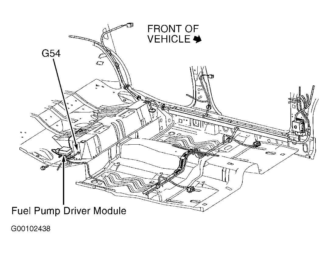 Fuel Pump Driver Module Under right rear seat. See Figure.