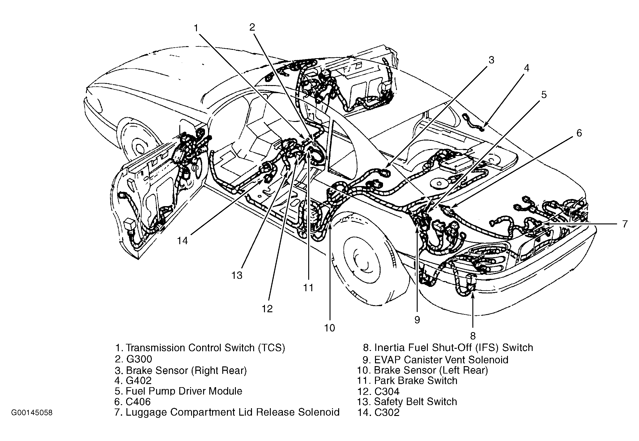 Fuel Pump Driver Module Underside of luggage compartment. See Figure.