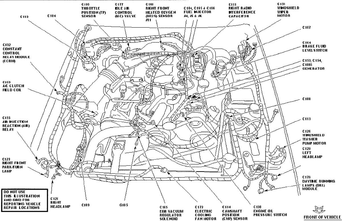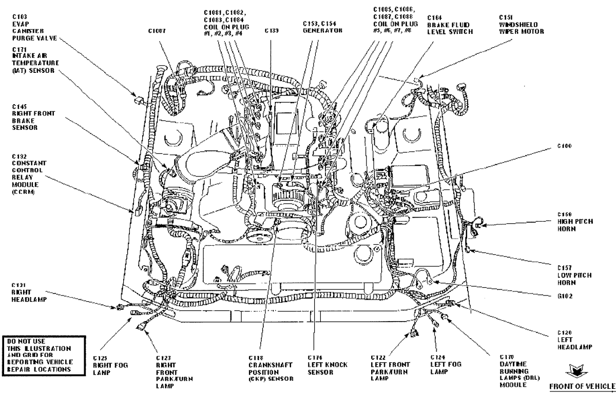 Fig 1: Locating Engine Compartment Electrical Component (4.6L - 4V)