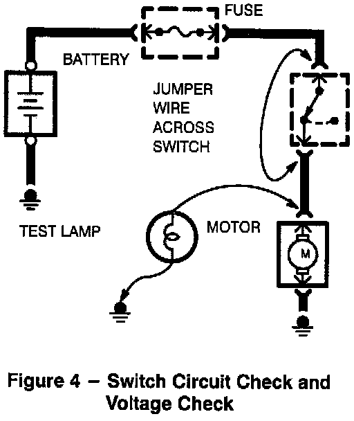 Connect one lead of Self-Powered Test Lamp or Ohmmeter to each end of circuit. Lamp will glow if circuit is closed. Switches and fuses can be checked in the same way.