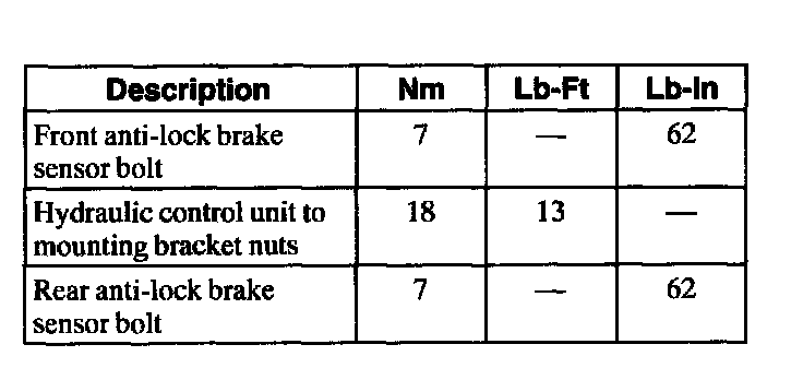 Torque Specifications