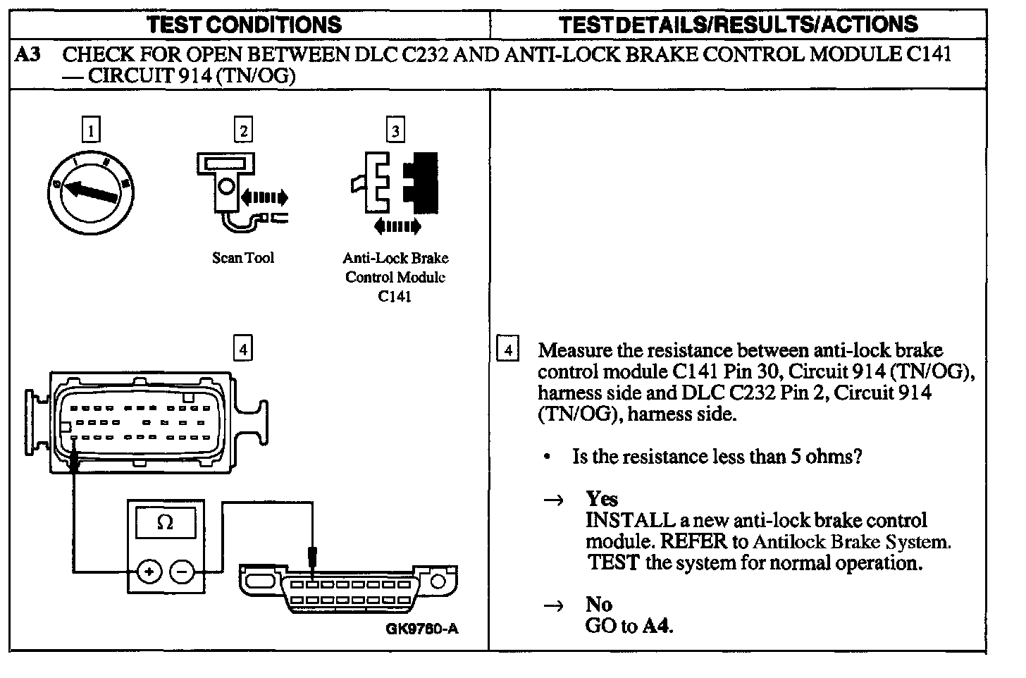 Test A: ABS Control Module Does Not Respond to the Scan Tool