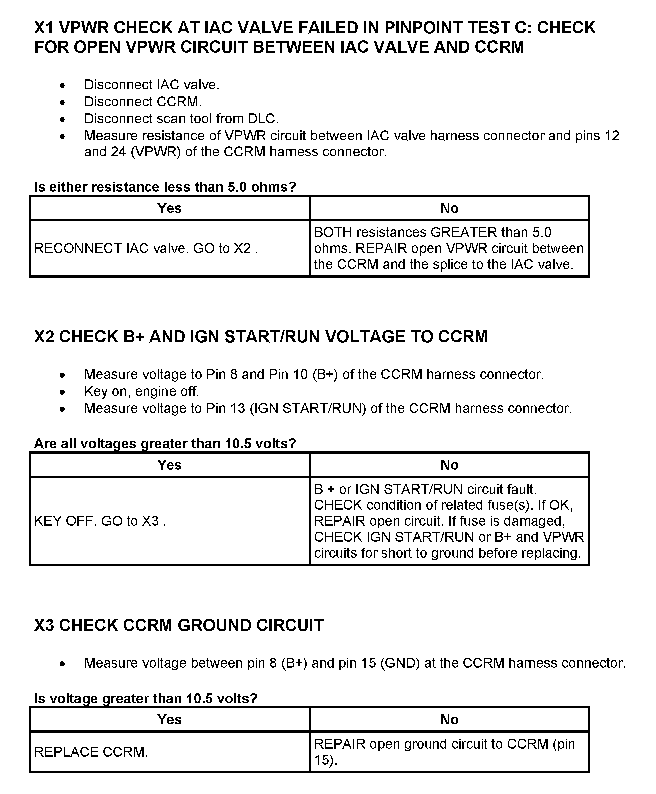 Home >> Ford >> 2000 >> Mustang V6-3.8L VIN 4 >> Repair and Diagnosis >> Powertrain Management >> Computers and Control Systems >> Testing and Inspection >> Pinpoint Tests >> Test X: Constant Control Relay Module (CCRM)
