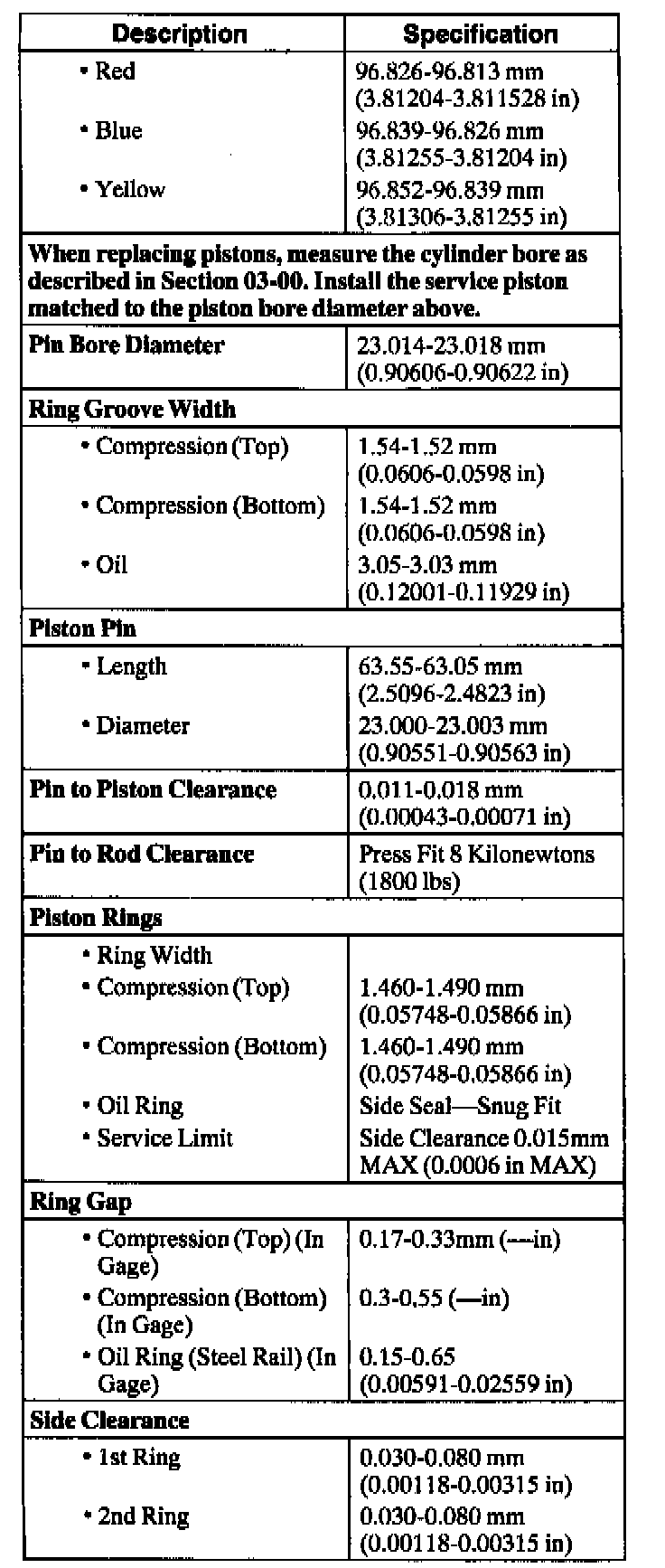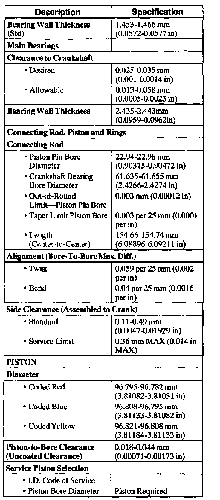 Engine General Specifications