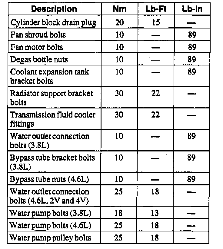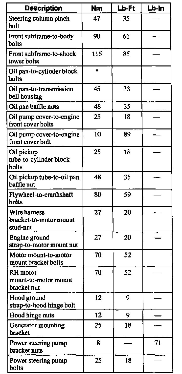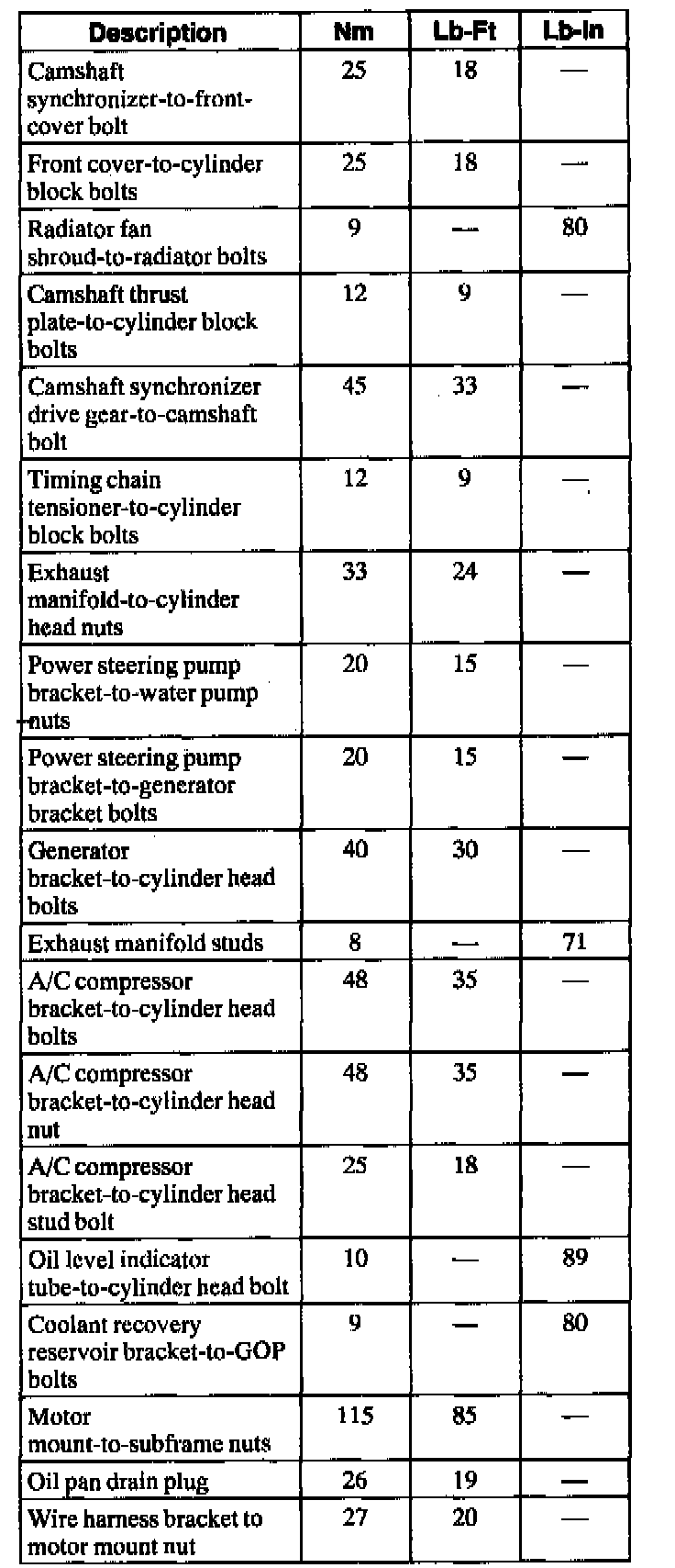Torque Specifications