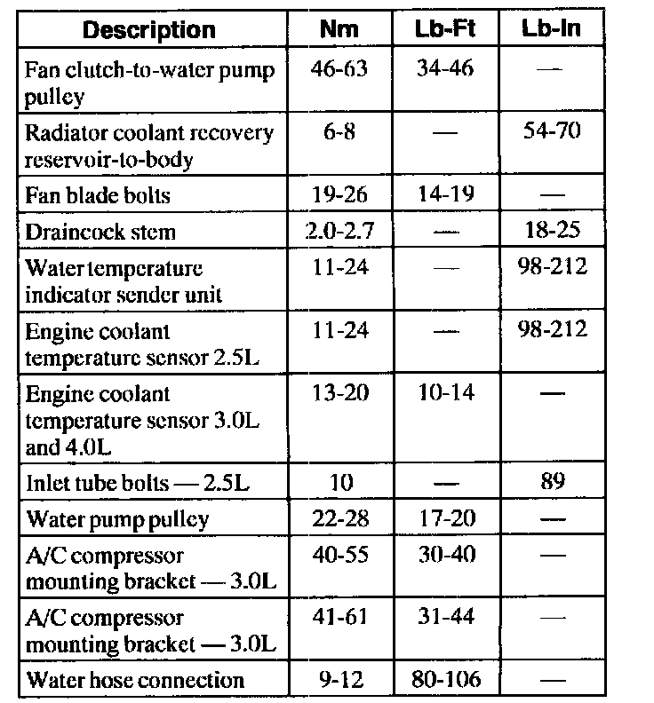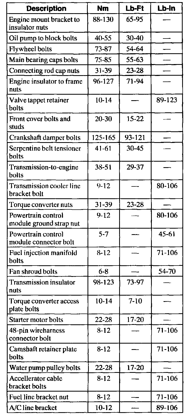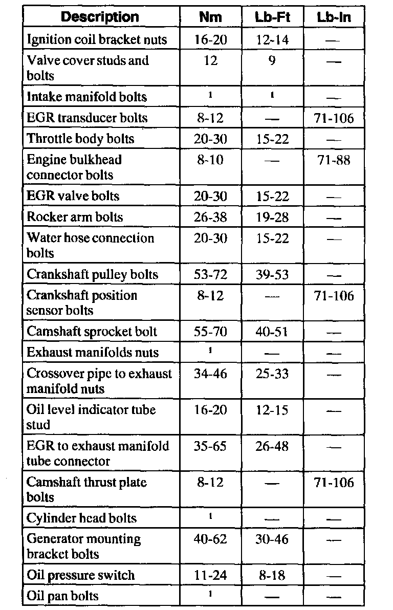 General Torque Specifications