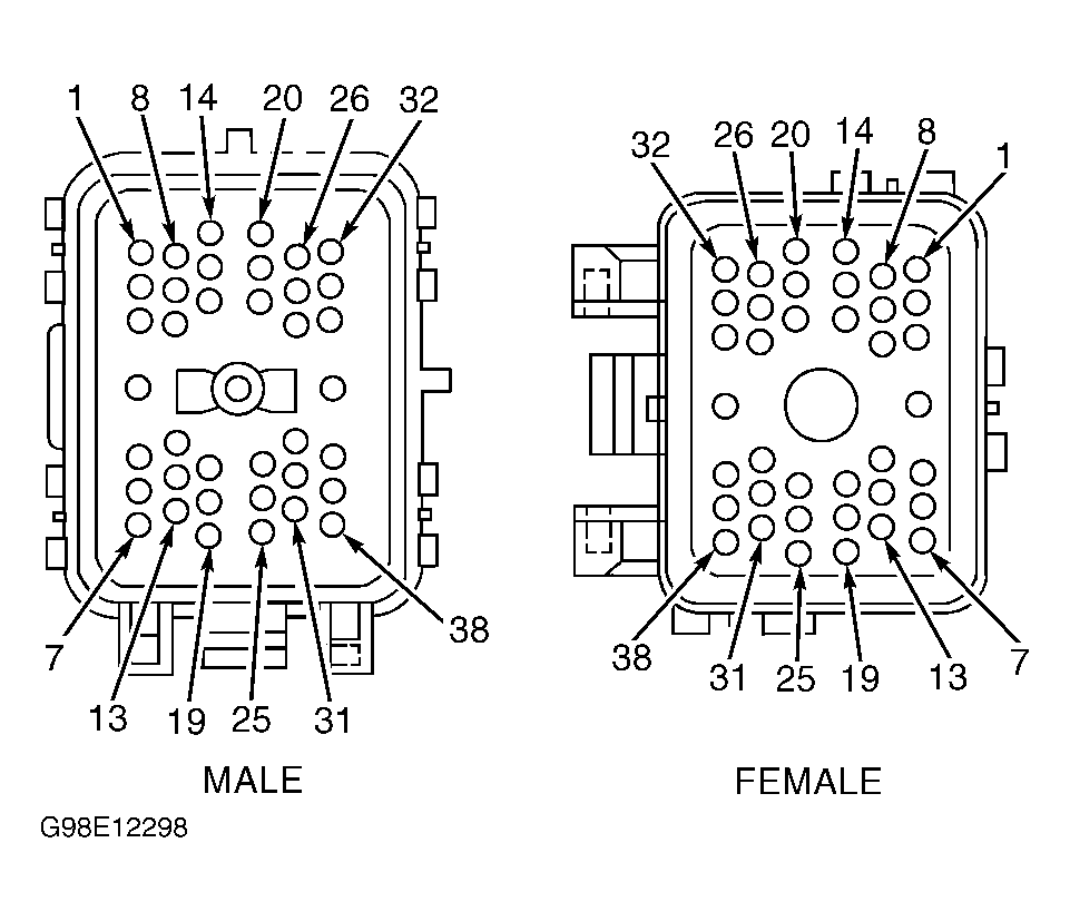 - Disconnect in-line harness connector C263. In-line harness connector C263 is located behind right side of instrument cluster. Inspect connector for loose, damaged or corroded terminals. Repair connector as necessary. Measure resistance in Light Blue/White wire between terminal No. 2 at female half of in-line harness connector C263 and terminal No. 7 at DLC. See Figure and Fig 2 . If resistance is 5 ohms or less, repair open in Light Blue/White wire between male half of in-line harness connector C263 and RCM. If resistance is greater than 5 ohms, repair open in Light Blue/White wire between female half of in-line harness connector C263 and DLC.