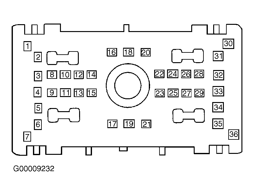 - Ensure ignition is off. Disconnect GEM 36-pin connector C201c. Measure voltage between ground and luggage compartment release switch connector terminal No. 2 (Violet/Red wire). See Figure . If voltage exists, repair short to power in Violet/Yellow wire between Central Junction Box (CJB) and luggage compartment lid release switch. If no voltage exists, go to step 19 .