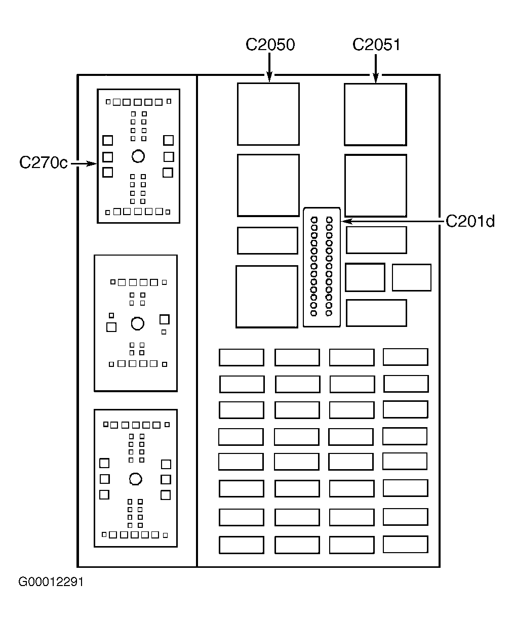 - Turn ignition switch to OFF position. Disconnect GEM harness connector C201d. See Figure . Turn ignition switch to ON position. Measure voltage between delayed accessory relay connector C2050 terminal No. 85 and ground. If no voltage is present, go to step 9 . If any voltage exists, repair short to power in instrument panel fuse box.