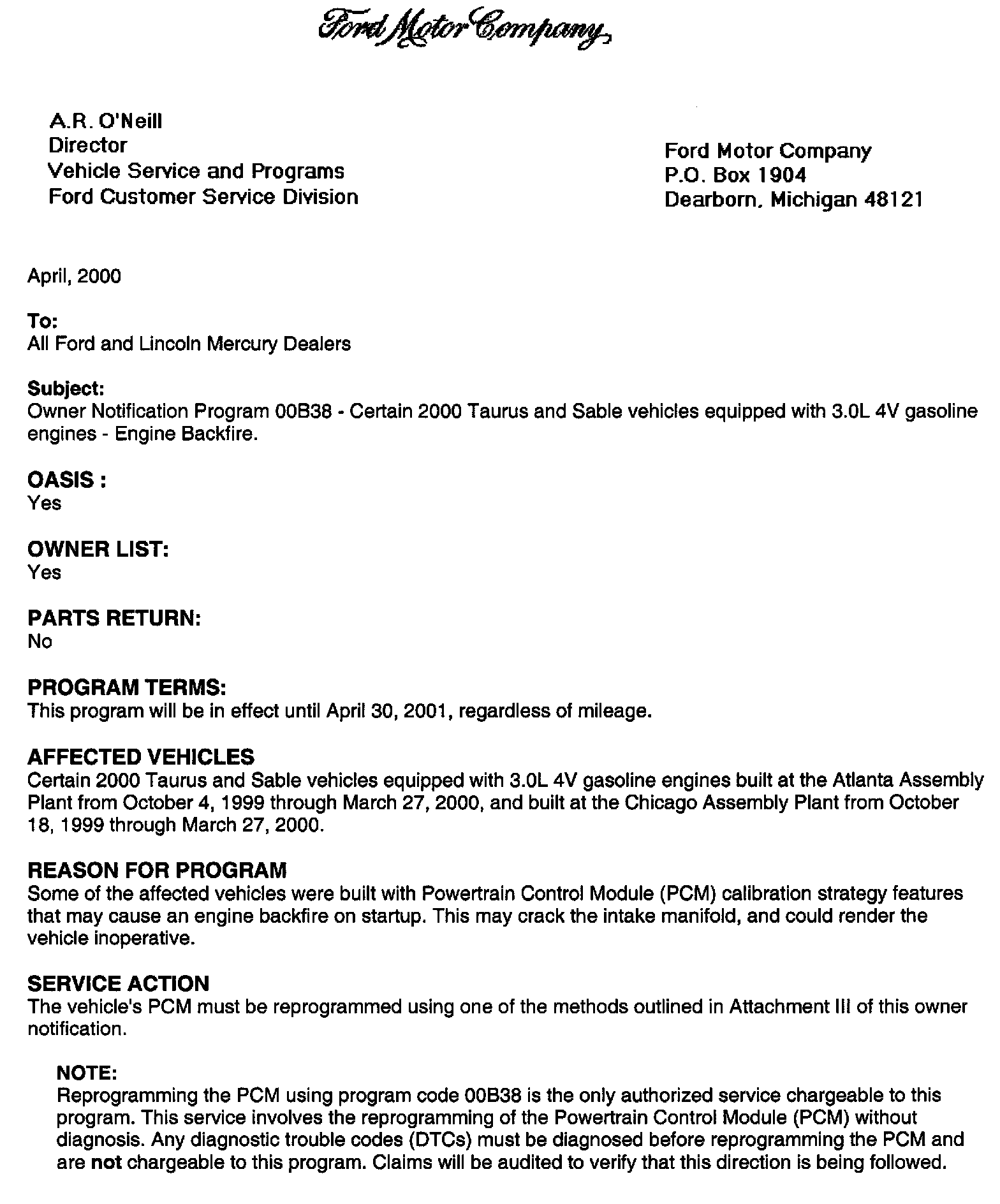 Dealer Letter