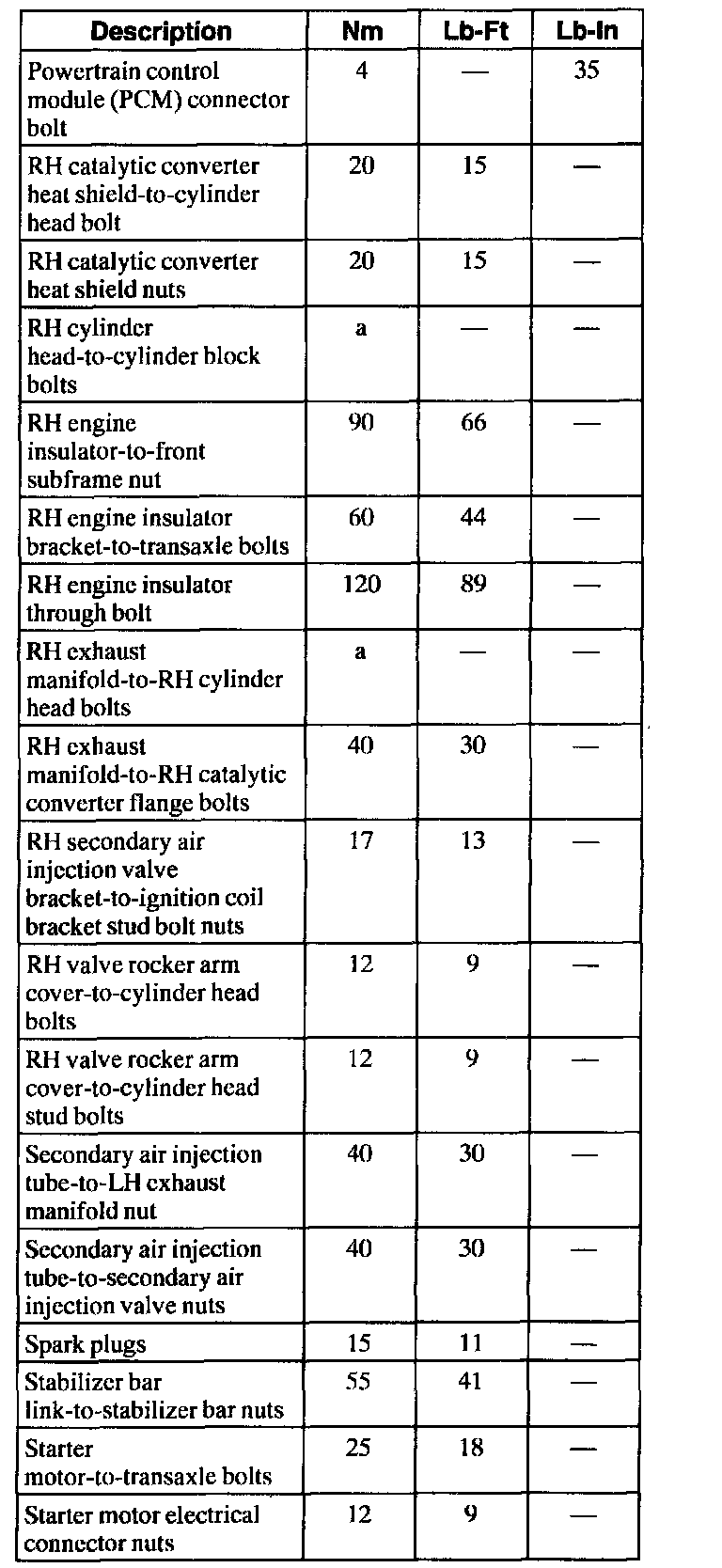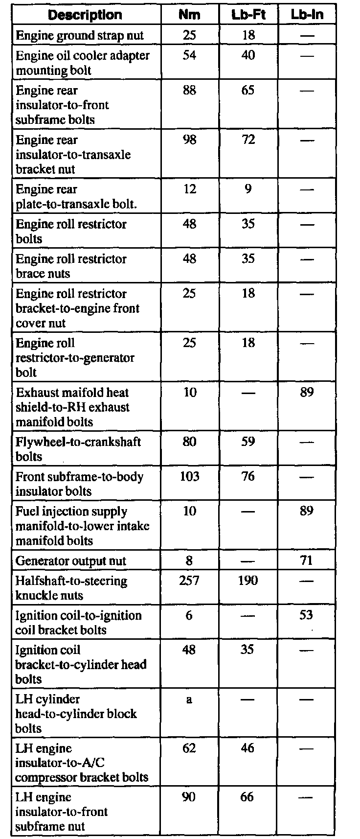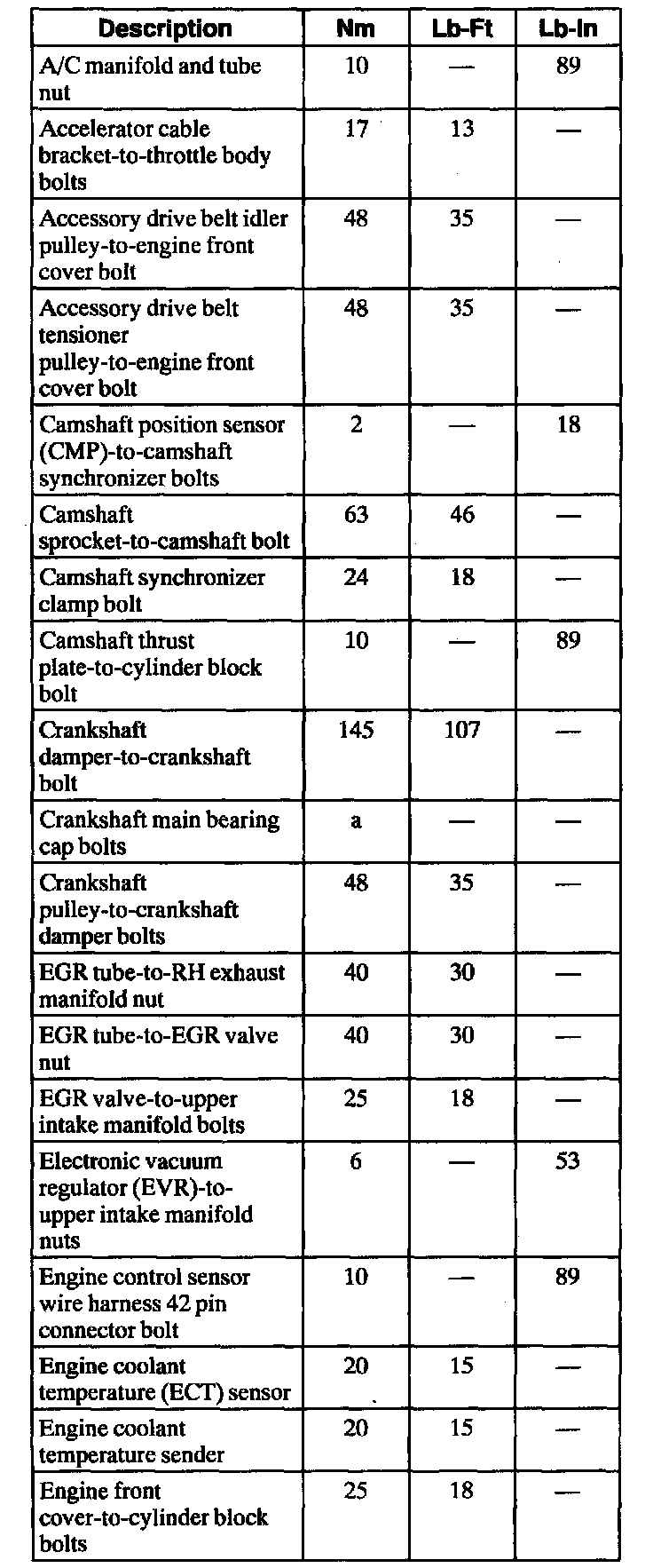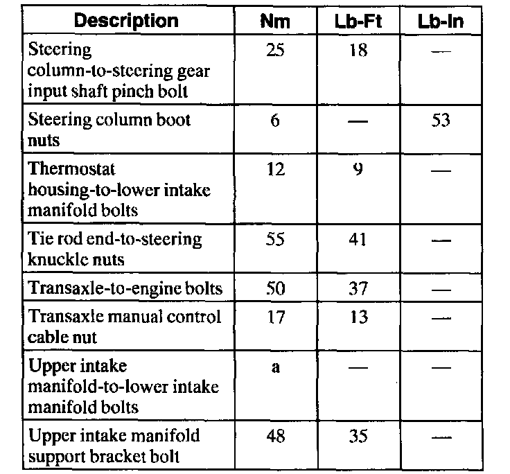 General Torque Specifications