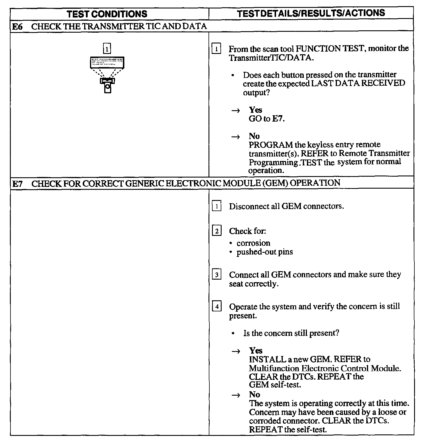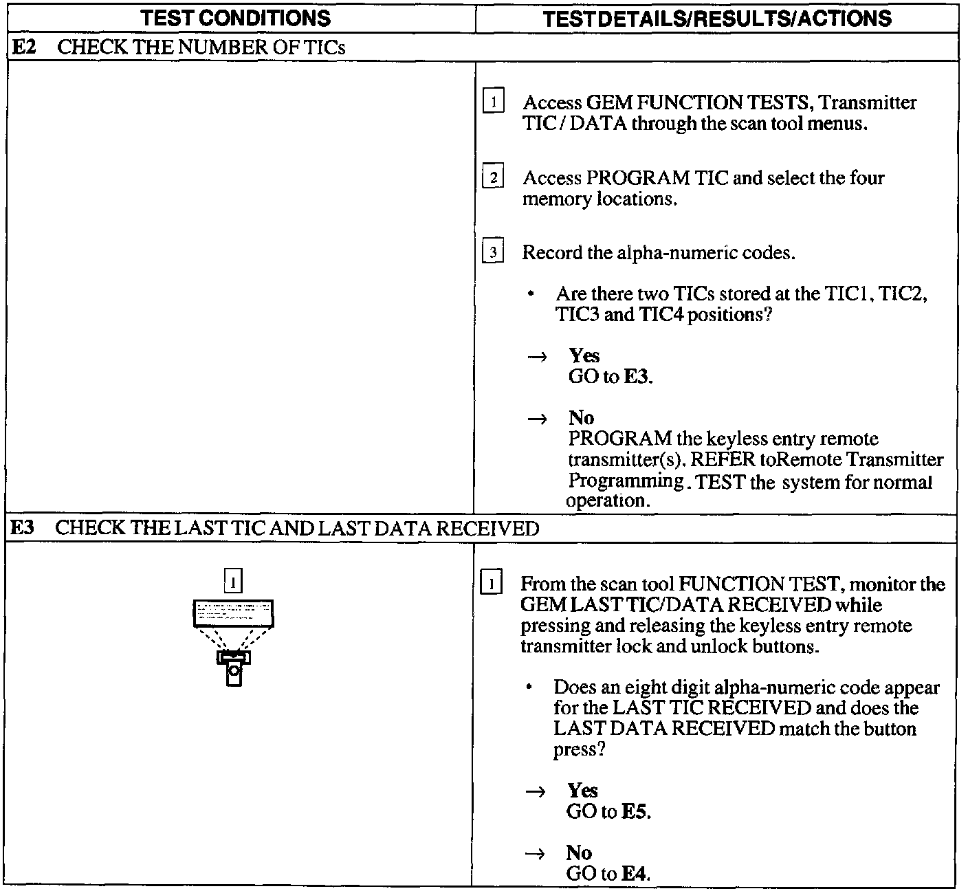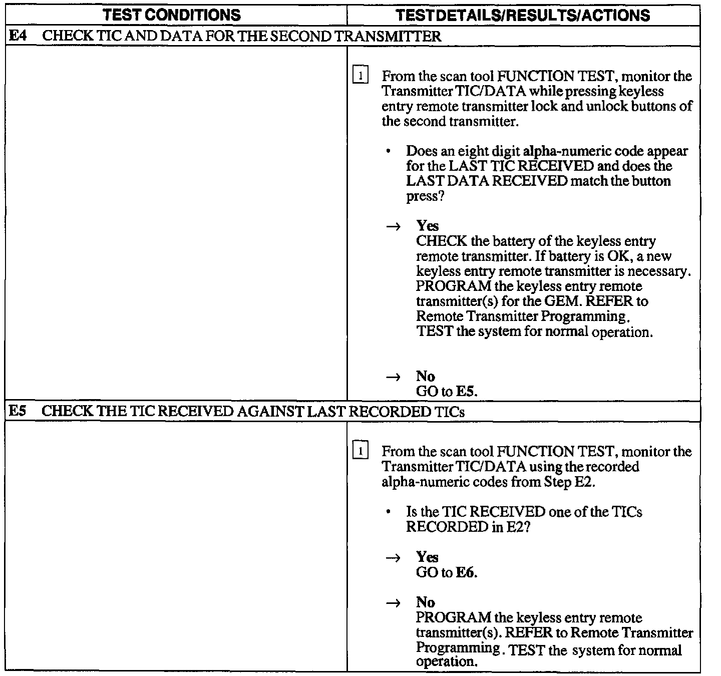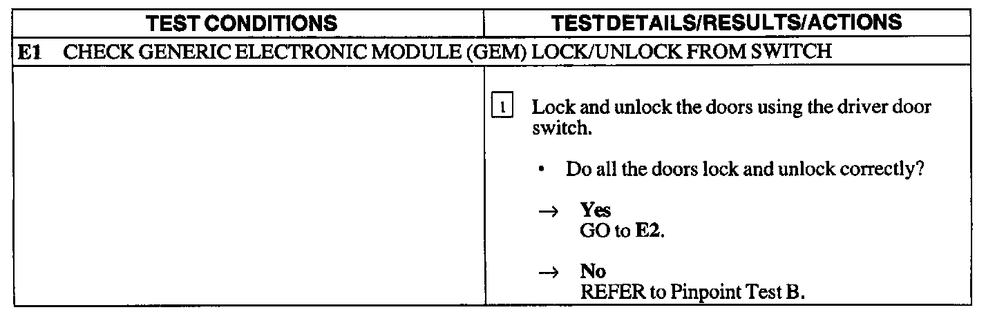 Test E: Doors Do Not Lock Or Unlock Using The Keyless Entry Remote Transmitter